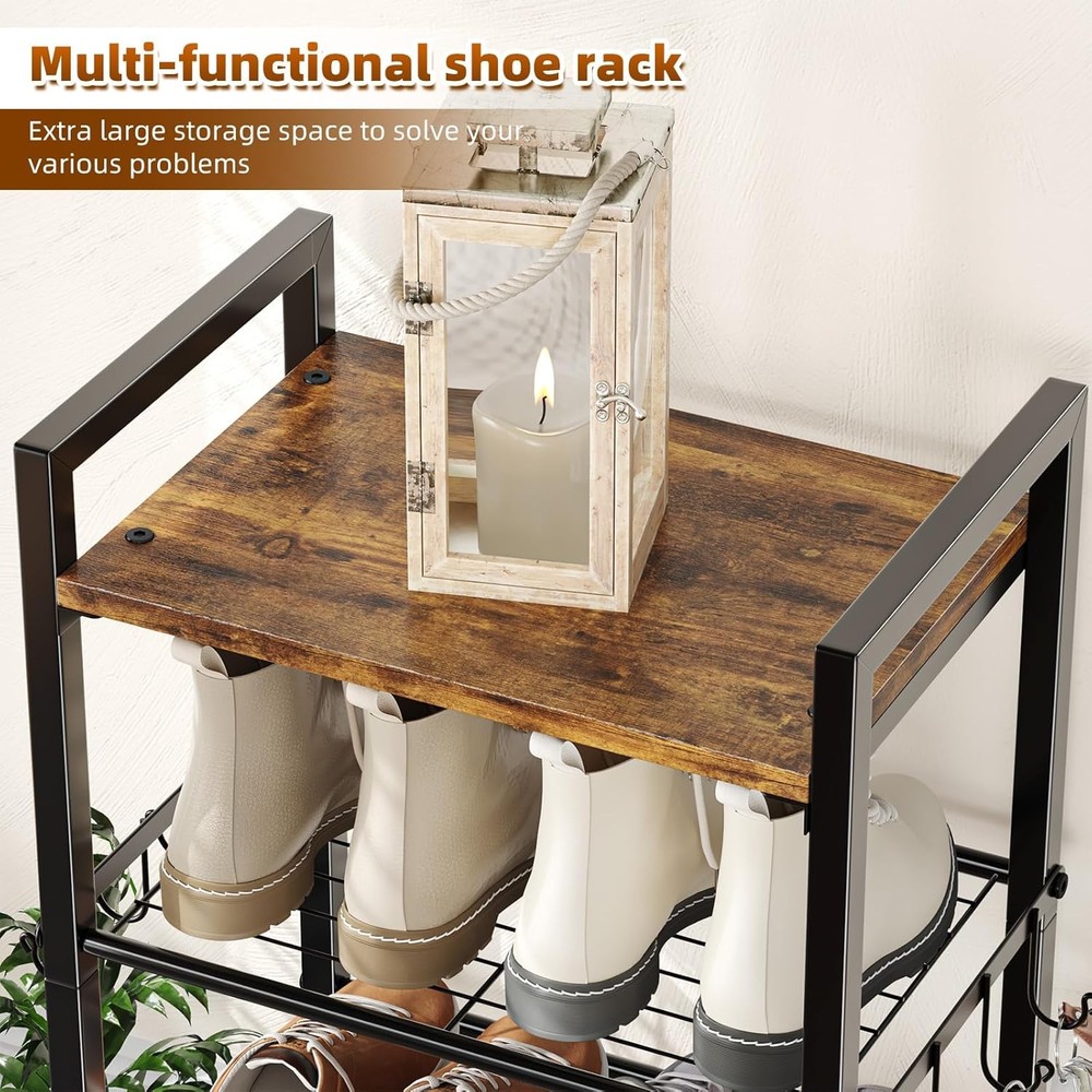 About this item 8-TIER SHOE RACK: This shelves fit boots, high heels or slippers and hold 16 pairs of shoes.The top board can hold bags keys and other small items MULTIFUNCTION: In the kitchen, set the kitchenware and cutlery, In the living room, the shelves can hold sundries,Put it in the closet and keep the clothes neat, Make the utility room looks cleaner SPACE SAVING: This compact shoe rack cabinet can be placed in a tight space in a closet to do the same job with a smaller footprint, maximizing storage space while saving space through higher tiers DURABILITY: Made of thickened metal tube with power coated finish which is smooth and with strong corrosion resistance EASY ASSEMBLY: Simple structure design makes it very easy to assemble