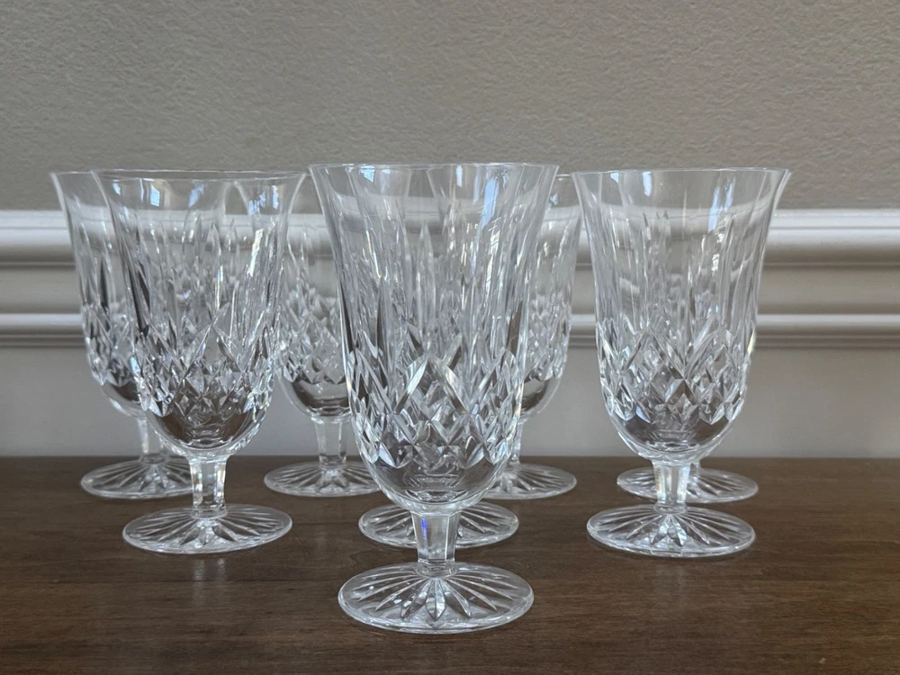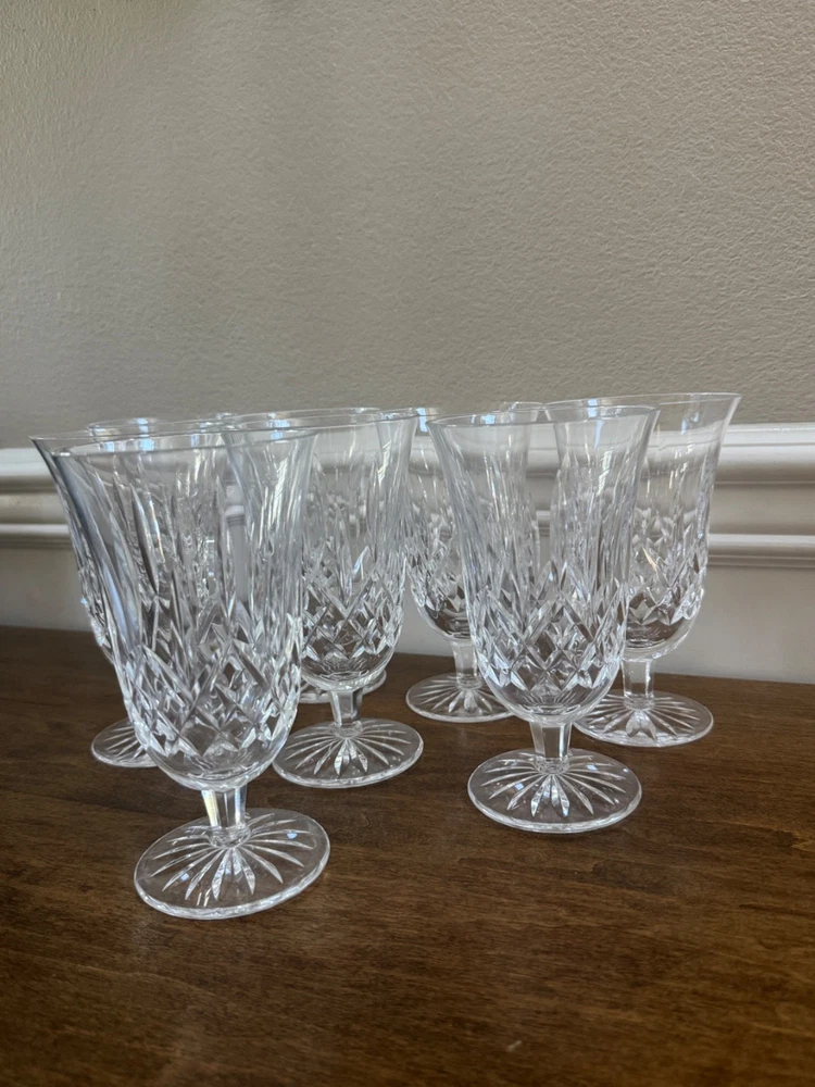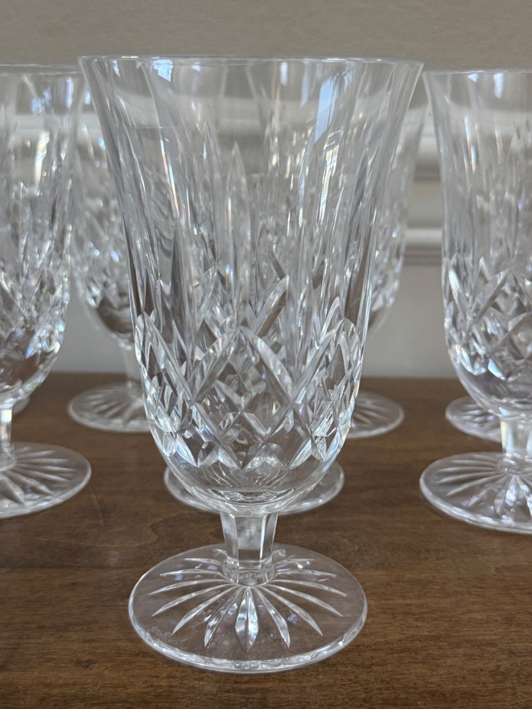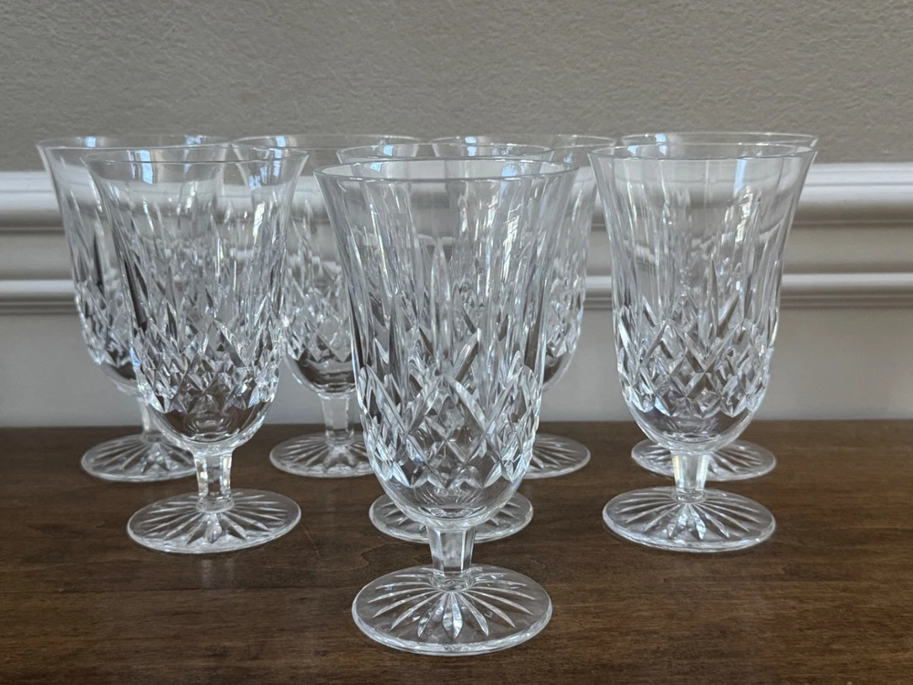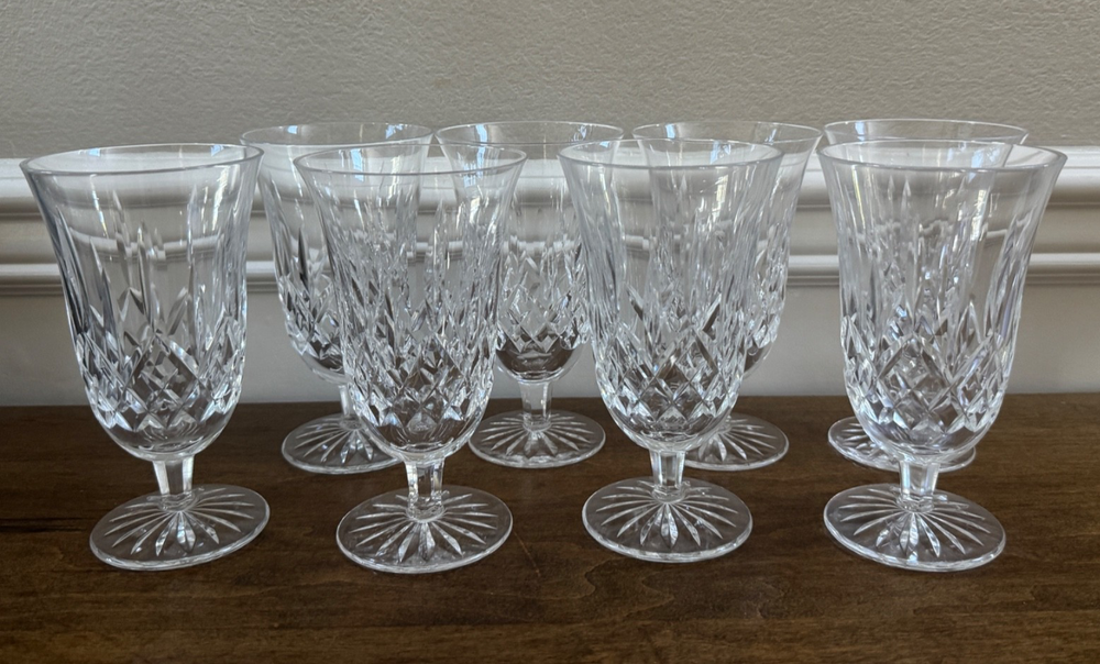 8 Waterford Crystal Lismore Iced Tea Stem Glasses 6.5 Inch Set