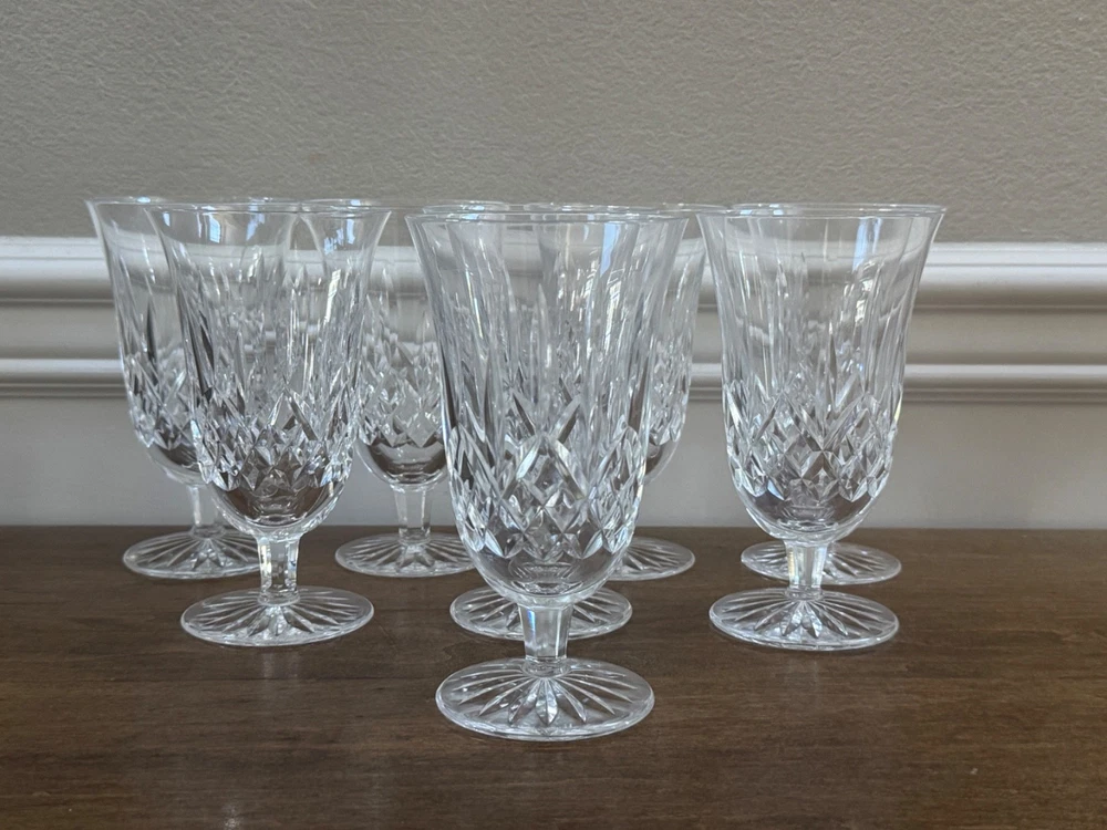 LOT OF 8 WATERFORD CRYSTAL LISMORE ICED TEA STEM GLASSES 6.5" BEAUTIFUL ESTATE SALE FIND VERY GOOD CLEAN CONDITION ROUGHLY 6 1/2" TALL AND 3 3/4" RIM TO RIM THANK YOU FOR LOOKING I HAVE OTHER LISMORE PATTERN ITEMS ON SEPARATE LISTINGS - I WILL BE HAPPY TO COMBINE SHIPPING IF SAFE TO DO SO Disclaimers All items are from local estate sales and garage sales around San Diego, Ca. All items sold by us are being described to the best of our ability and with utmost conscientiousness on our part, but please know we are not experts. To avoid any potential oversights, we respectfully request your assistance in thoroughly reviewing the description, photos and asking questions prior to Buying/Bidding. Any damage will be mentioned and included in photographs. Shipping Item(s) will be shipped within 1 business day (Monday-Friday) after payment has cleared. Depending on the fragility of the item, combined shipping may not be available on all items . Please message me to discuss shipping options. Return Policy 100% Satisfaction Guaranteed. We want to ensure that you are completely satisfied with your purchase. If not, then please let us know by messaging us on eBay before leaving any feedback & allow us to work with you to completely resolve any issues that you might be facing with your order. If you feel that you got an item that is different from what you ordered or if it arrived damaged or if you have any problems with the item, please email us & we will be glad to work with you in resolving any issues. All returns must reach us within 30 days after the item was delivered to you. The items must be in their original condition when they were sent to you. We will issue you a refund within 3 business days once the item has been received. Note: Depending on the reason for return, the original cost of shipping may not be included in refund amount.