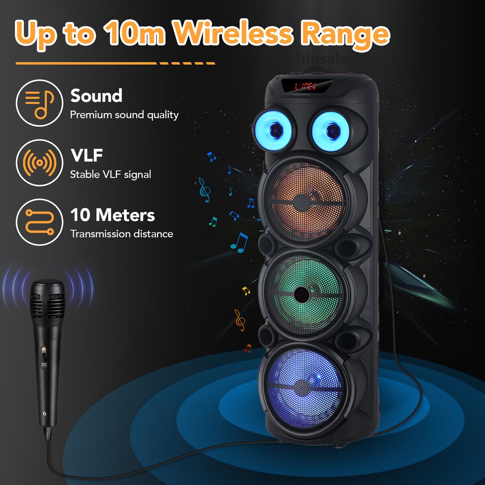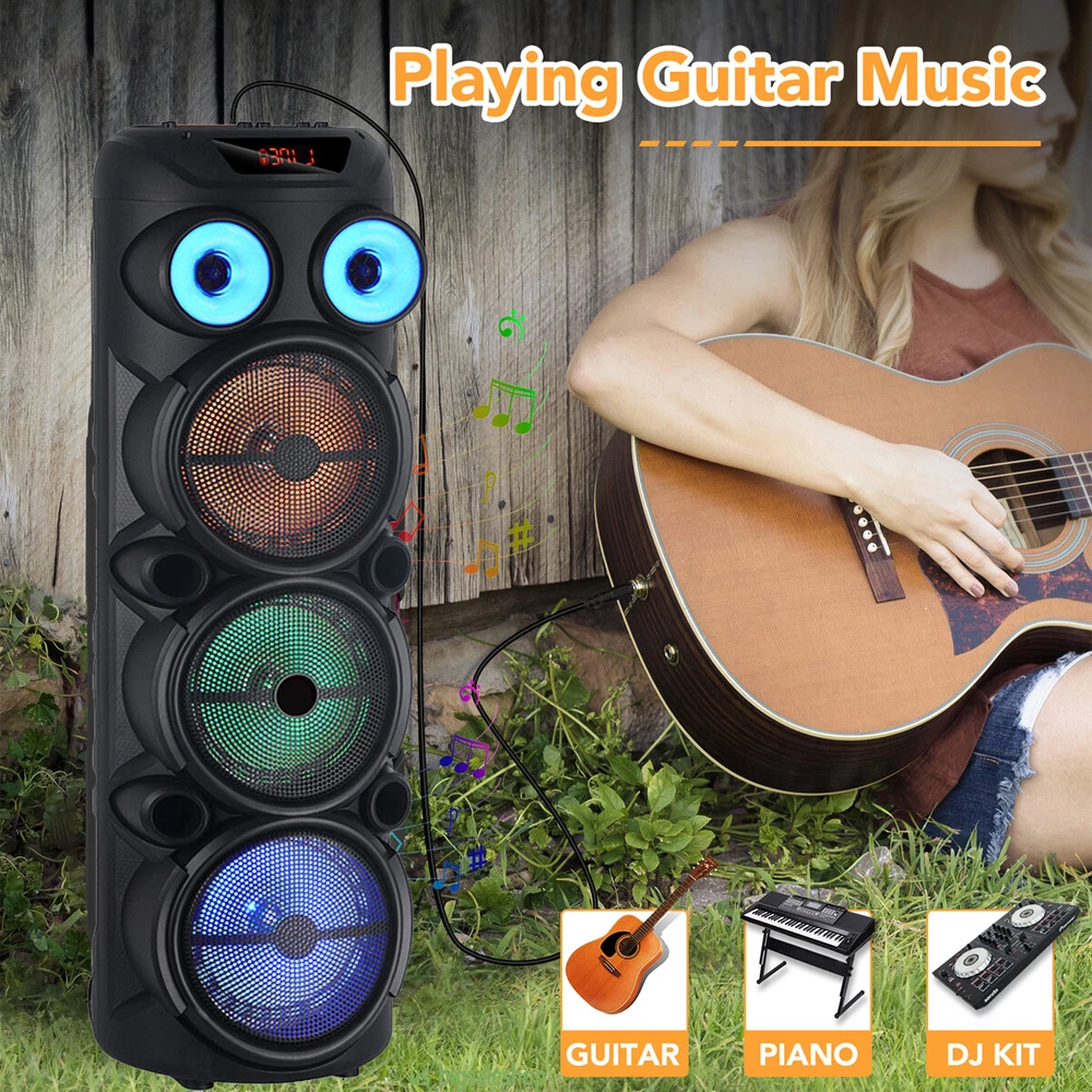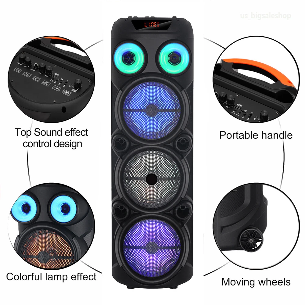 3* 8" Wireless Portable Bluetooth Party Speaker Woofer Heavy Bass Sound With Mic Features: 1. Triple Bass Power Three 8-inch tuned woofers pump out theater-quality sound—deep bass, balanced mids, and sparkling highs for parties, outdoor events, or home cinema. 2. Smart 5-in-1 Connectivity Bluetooth 5.0 streaming (PBX-831 model) USB/TF card playback AUX input TWS pairing (double speakers = stereo surround) Device-charging USB port (5V/1A) 3. Global Travel-Ready Works with any 110V-240V outlet worldwide. Compact frame (35.75"H) weighs just 16.2 lbs—haul it anywhere via built-in handles. 4. Tough & Tactile Design Military-grade ABS shell resists drops and weather. Sleek black finish survives beach days, hikes, or backyard bashes. 5. Instant Command Dedicated buttons for volume, tracks, and modes—no app needed. Built For: Pool parties • DJ gigs • Tailgates • Movie marathons • Global adventures Specifications: Material: ABS Color: black Bluetooth model: PBX-831 Speaker: 8 inch *3 Function: Bluetooth, TF card, USB mode, AUX, TWS Input: 110v-240v 50-60Hz Output: DC5v 1A Size:11.22*11.02*35.75in Weight:16.2LBS Package Included: 1 x Portable Speaker 1 x USB Charge Cable 1 x Wired Remote Control 1 x Remote Control 1 x User Menu Shipping Payment Return & Refund policy Feedback Customer Support - Contact Shipping FREE SAME BUSINESS DAY MONDAY- FRIDAY SHIPPING FROM USA. All orders and payments received before 4PM EST (1PM PST) will be shipped the same business day. All other orders within 1 business day. No shipping on Weekends or US Public Holidays. No responsibility for any custom duty Shipping information will be updated when available. Payment We accept payment via PayPal. Use PayPal at checkout to pay with credit or debit. Immediate payment is required. Shipping will be arranged within 1 business day once payment is cleared. Return & Refund policy 1.We stand behind our items and offer 60 days warranty. All items are in new and working condition unless specified otherwise elsewhere in the description. 2.All Returns - defective or otherwise - MUST BE PREAUTHORIZED to guarantee refund or exchange. Please contact us to get an authorization and return address. 3.Buyer agrees to pay for the cost of re-shipment for undeliverable or wrong addresses. 4.Buyer is responsible for Return Postage as well as a 20% restocking fee if return/replacement is not a result of our mistake such as wrong item. 5.Replacement or Refund will be made upon receipt of the returned item. Please include tracking number so we can process ASAP. If you do not wish to wait for a replacement, please repurchase the item. 6.ALL REFUNDS will be processed via PayPal. Please double check via PayPal history and transaction for confirmation. PayPal will send it back to whatever you used to pay within 3-5 days. Feedback We strive to provide the best products and services. If anything about your transaction did not meet expectations, please CONTACT US and give us the opportunity to make things right. We are always here to help. Customer Support - Contact Please do not hesitate to CONTACT US. You can message 24/7 on eBay for all questions and inquiries. We will get back to you within 1-2 business days at the latest.