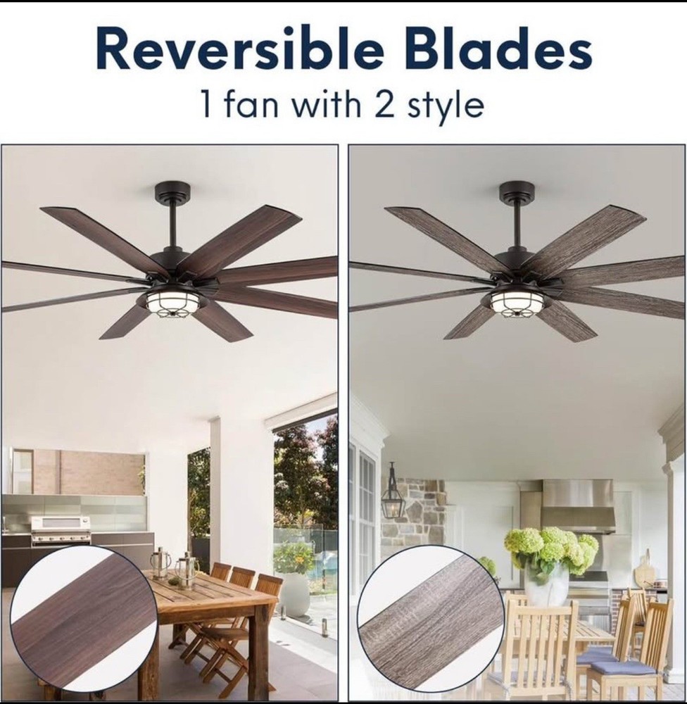 The 8 aBlade Waterproof Outdoor Ceiling Fan with Light is a modern, 72-inch fan designed for outdoor use in patios. It features a remote control for easy operation, warm white LED light, and six speeds for customizable airflow. The black fan has a waterproof finish and a stylish design, perfect for the 21st century era. With its 8 blades and corded power source, this ceiling fan offers both functionality and aesthetics for outdoor spaces.