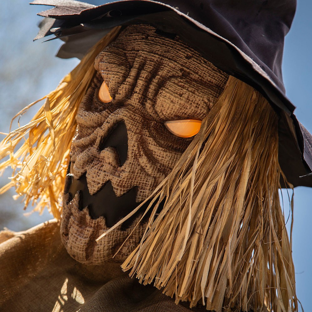 8 ft Brown Staked Animated Scarecrow Prop for Seasonal Decor