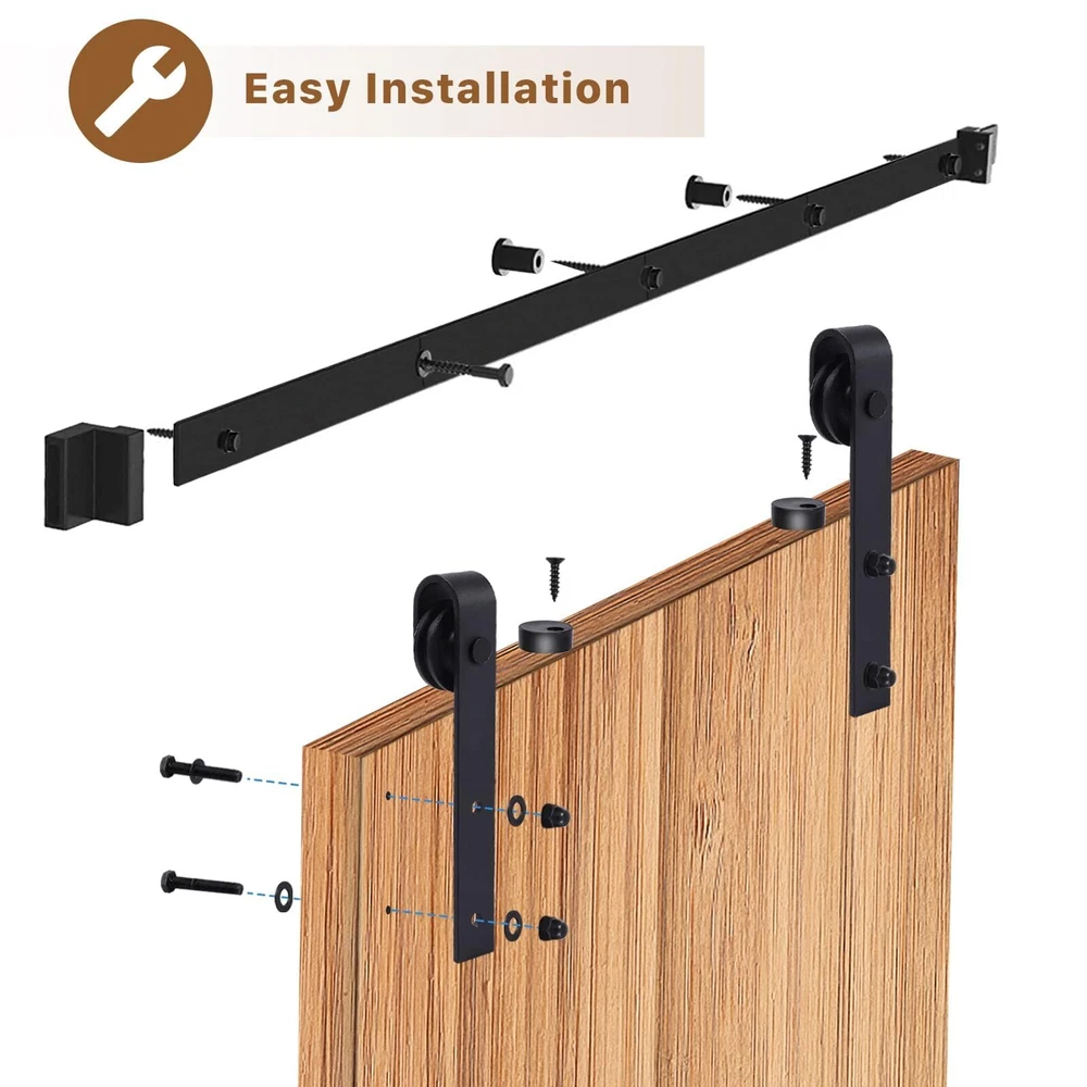 8 ft Sliding Barn Door Hardware Kit, Smoothly and Quietly - Simple and Easy t...