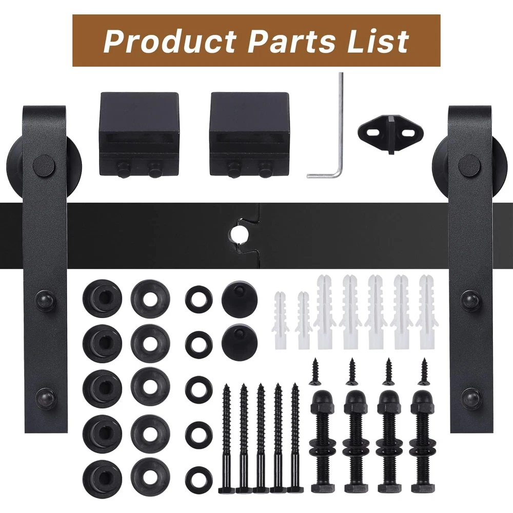 Heavy Duty Sliding Barn Door Hardware Single Track Bypass Double Doors Kit Black