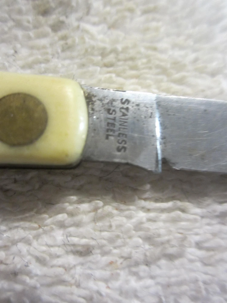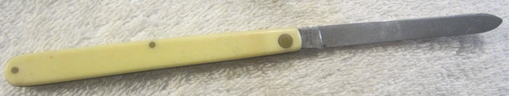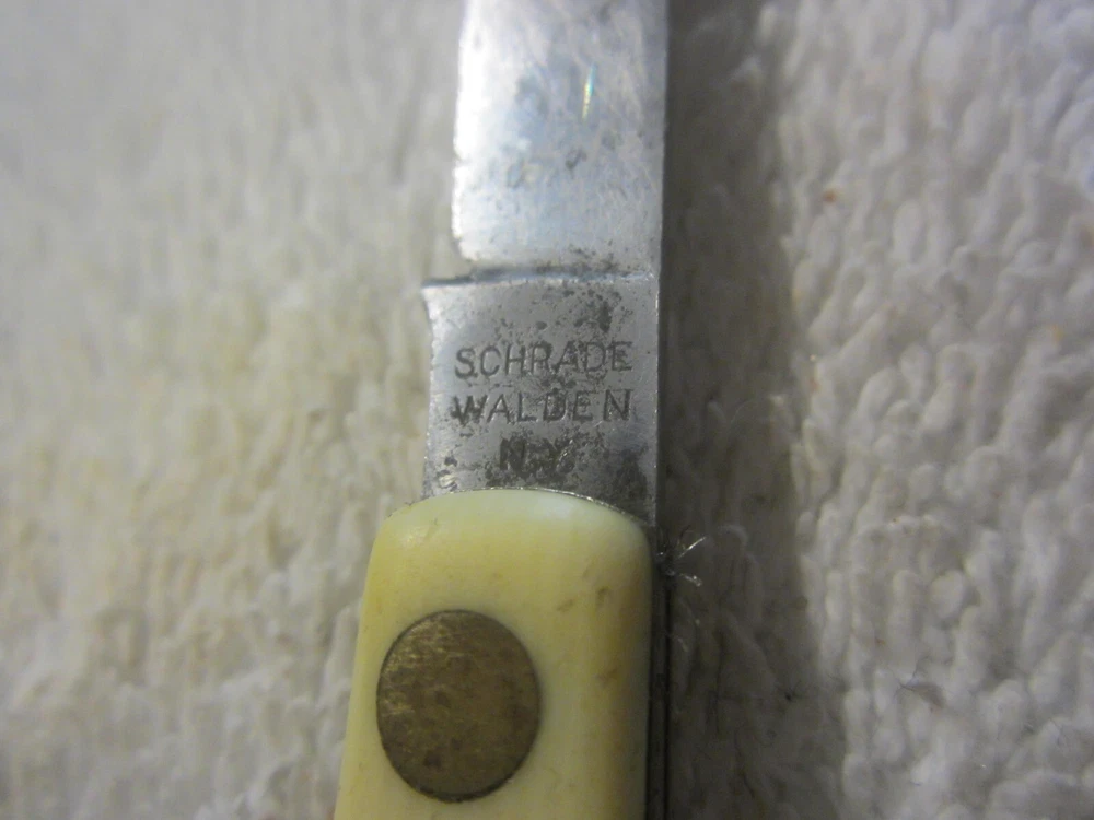 Opening Mechanism:ManualBlade Edge:PlainBrand:SchradeCountry/Region of Manufacture:United StatesBlade Material:Stainless SteelHandle Material:PlasticDexterity:AmbidextrousLock Type:SlipjointModel:naProduct Line:naNumber of Blades:1Type:PocketknifeBlade Type:shownColor:CreamOriginal/Reproduction:OriginalSeller Notes:“Has some lite discoloring and use wear. Should be cleaned and sharpened. See pics for condition.”