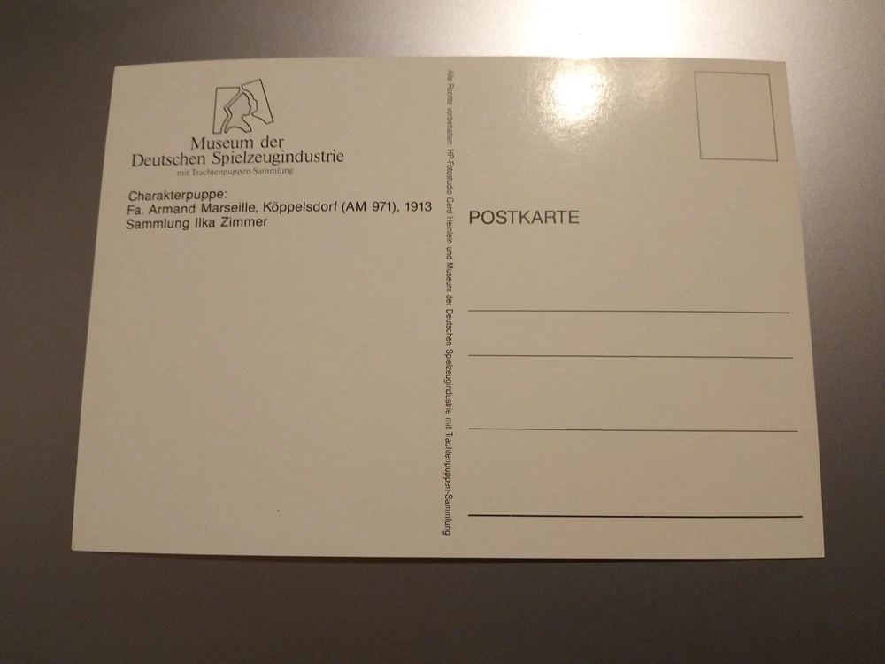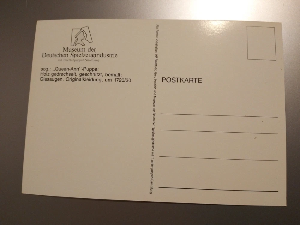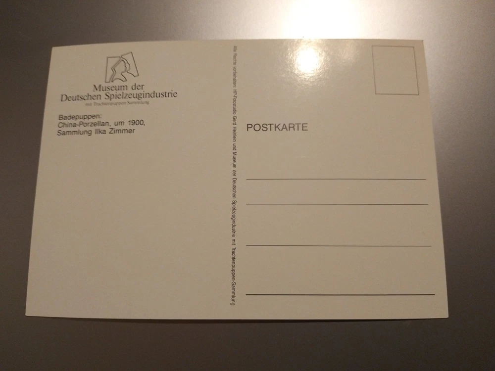 Tauchen Sie ein in die Welt der Nostalgie mit diesem exklusiven Set von 8 Fotopostkarten aus dem Museum der Deutschen Spielzeugindustrie in Neustadt bei Coburg. Jede Karte präsentiert liebevoll eingefangen Momente von Teddybären und alten Puppen, Motiven, die Liebhaber von Kunst und nostalgischer Romantik begeistern werden. Die Karten sind aus hochwertigem Karton gefertigt und zeugen von der handwerklichen Finesse und dem authentischen Charme deutscher Spielwarentraditionen. Diese Originalpostkarten sind ein wertvolles Sammlerstück für Kenner und bieten eine einzigartige Zeitreise in die Nachkriegszeit. Ob zum Sammeln, Verschicken oder als romantisches Geschenk, diese Motivkarten verbinden künstlerische Schönheit mit historischem Wert und sind ein kulturelles Kleinod aus Deutschland. Privat Verkauf keine Garantie und keine Rücknahme und Ausschluss jeglicher Gewährleistung.