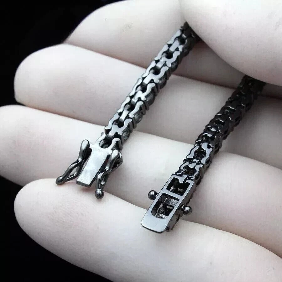 8.0 Ct Round Lab Created Black Onyx 6MM Tennis 7" Bracelet 14K Black Gold Plated