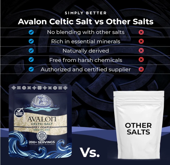 Avalon Celtic Salt, 8.0 OZ Coarse Celtic Sea Salt Organic, Unrefined French Celtic Salt Organic 82 Minerals Coarse, 100% Natural Gros Sel Gris, Sal Celtica Organica, Celtics Salt. Flavor CELTIC SALT Brand AVALON CELTIC SALT Specialty MINERAL FRENCH SEA SALT Unit Count 8.0 Ounce Number of Items 1 100% ORGANIC CELTIC SEA SALT: Avalon Celtic Salt is hand-harvested from the France coastline, offering a natural and Organic Celtic Salt rich in 82+ essential minerals, providing both flavor and health benefits. ELECTROLYTE BALANCE SUPPORT: Avalon Celtic Salt is rich in essential minerals like magnesium, calcium, and potassium, making it an excellent choice for supporting electrolyte balance. It's ideal for those following paleo, keto, or low-carb diets. VERSATILE AND FLAVORFUL: Ideal for seasoning meats, seafood, vegetables, and more, our Avalon Coarse Celtic Salt enhances flavors while providing the natural goodness of unrefined mineral salt. COARSE GROUND PERFECTION: Our sea organic salt features larger crystals that are perfect for grinders, providing a satisfying crunch and a bold, savory flavor when used as a finishing salt. It adds texture and depth to any dish. SUPERIOR PACKAGING FOR FRESHNESS: Our premium resealable bag locks in freshness, ensuring our celtics salt remains pure and flavorful from first to last use, reflecting our commitment to providing the finest quality products. . We offer FREE shipping on all orders! . We ship within Five business days of payment, usually sooner. . We use a selection of shipping services such as UPS, FedEx, USPS etc. . We only ship to the lower 48 states, no APO/FPO addresses or PO Boxes allowed. . Local pickups and combined shipping options are not provided at this time. . Your satisfaction is a wonderful reward for our efforts. Please assist us by leaving a positive review if you feel pleased with our service. . In the event that you encounter any difficulties related to your order, please do not hesitate to reach out to us directly through the Messaging system on the Ebay platform. Kindly consider opening a COMPLAINT or a RETURN REQUEST as a last resort, only after all other possible measures have been attempted and we have been unable to provide you with assistance. . We will get in touch with you within 24 hours and make every effort to ensure your satisfaction. . Please rest assured of our service quality.