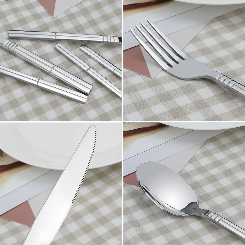 Made of premium stainless steel Tableware adopts mirror polishing design, with smooth surface and easy cleaning Suitable for everyday use or special occasions Flatware set serving for 16, including 16 knives, 16 dinner forks, 16 dinner spoons, 16 dessert forks and 16 dessert spoons Appropriate weight and thickness