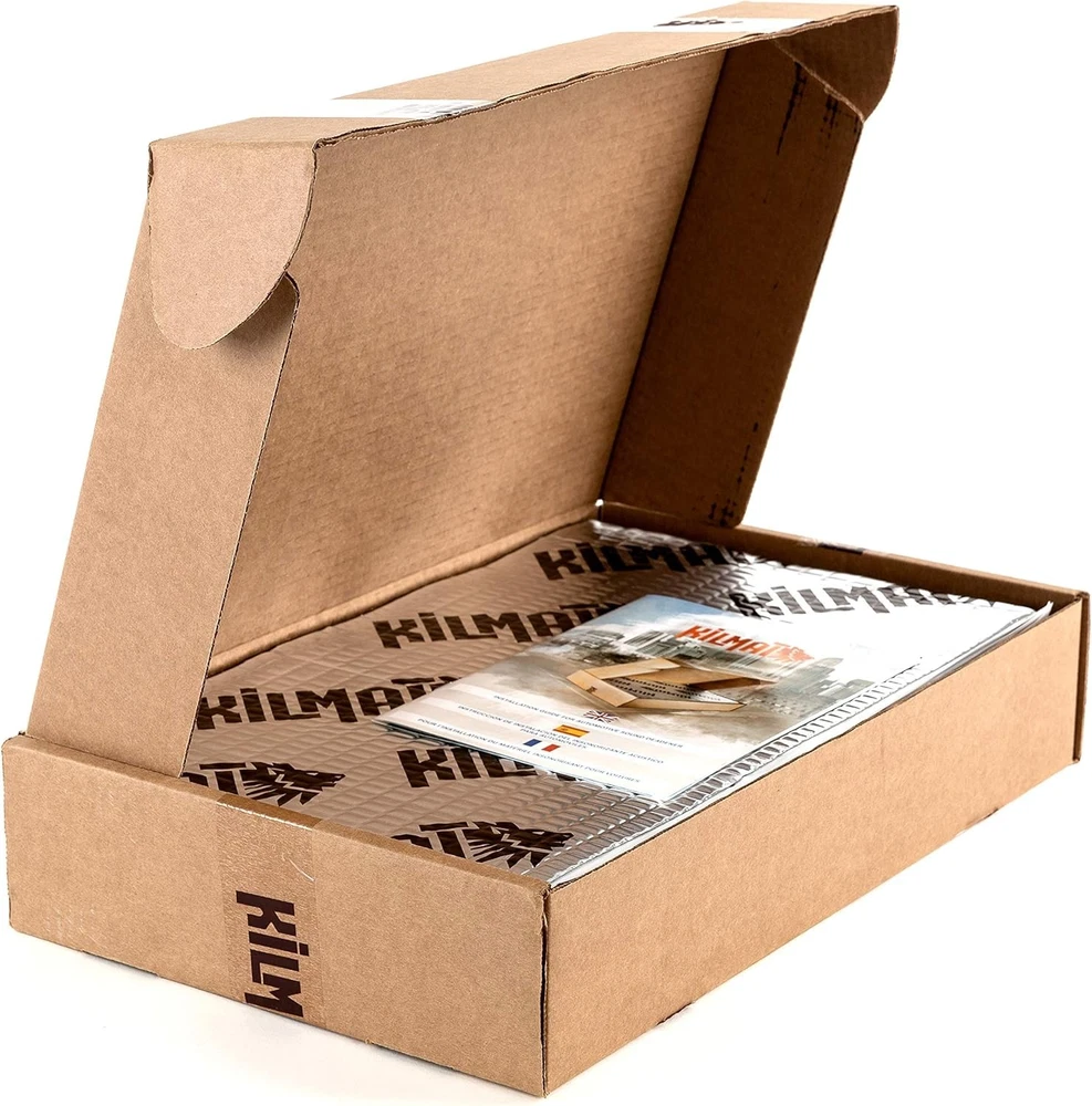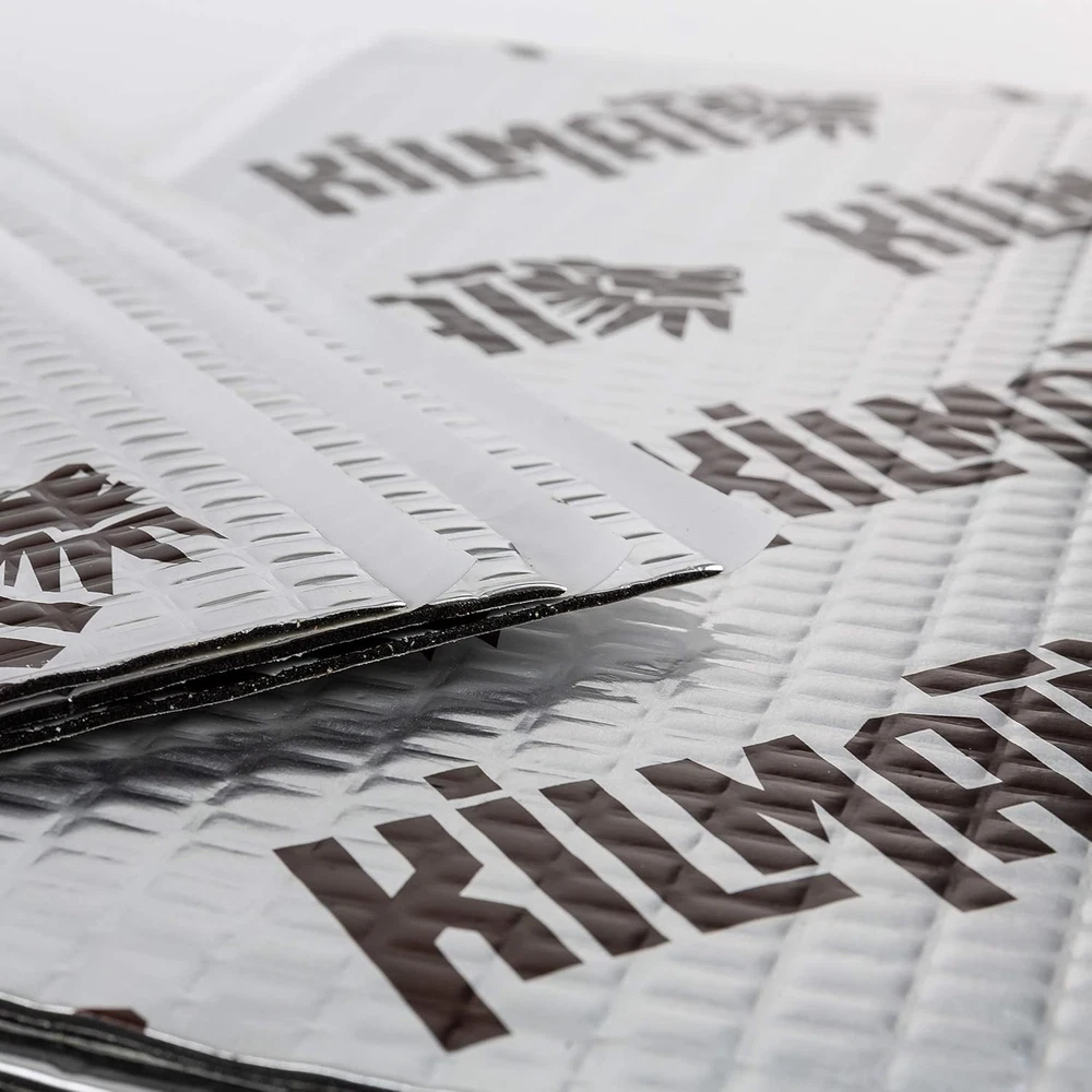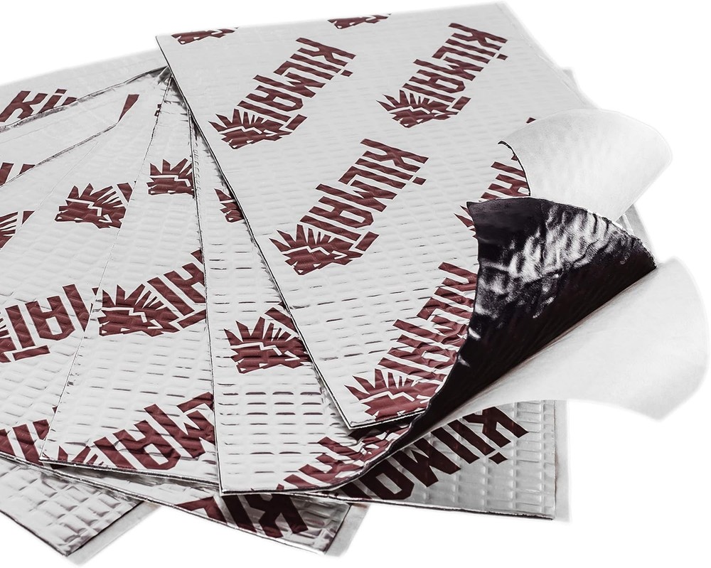 80 mil 36 sqft Car Sound Deadening 36 (3.4 sqm), Silver With Logo Kilmat Product Details Product Dimensions: 15.7"L x 9.8"W Manufacturer: KILMAT Part Number: KLM8036 Item Weight: 17 pounds Item model number: KLM8018 Batteries: 10 AA batteries required. Is Discontinued By Manufacturer: No Size: 36 sqft (3.4 sqm) Color: Silver With Logo Kilmat Style: 80 mil 36 sqft Item Package Quantity: 1 Special Features: Foil with KILMAT Logo, sound deadening, installation on clean and degreased surface, use roller during installation, vibro dampening, application from the interior side of a vehicle, automotive application, self-adhesive, wear gloves during installation, butyl based material, Thickness 80 mil=0.08 inch=2 mm, optimal weight and thickness, indicator of correct installation on the foil, soundproofing Included Components: Comes as a Combo Set Batteries Included?: No Batteries Required?: No Battery Cell Type: NiCAD Material: Aluminum Brand: KILMAT Coverage: 36 square feet Item Thickness: 1 Mils Recommended Uses For Product: Automotive insulation and noise reduction Very sticky self-adhesive 80 mil automotive butyl and foil sound deadening. It is user-friendly viable material suitable for DIY installation. KILMAT is really efficient and easy-to-install Now the material is 1,5 times thicker that will get you 1,5 times more effective insulation. The thicker the material the more performance you get Automotive self-adhesive insulation consists of butyl. KILMAT sound deadening has a total weight of 0.5 pounds/1 square feet. This weight ensures optimum efficiency and sound insulation that could be possibly gained from 80 mil thickness material. KILMAT 80 mil is light weighted sound deadening material Audio insulation KILMAT has a special indicator as to if it is installed correctly. The special embossing on the foil must be rolled out till it is plain smooth, then you'll be 100% sure that the soundproofing is set correctly and professionally. The sound dampening material comes in handy size sheets which make it easier in terms of cutting and installation process