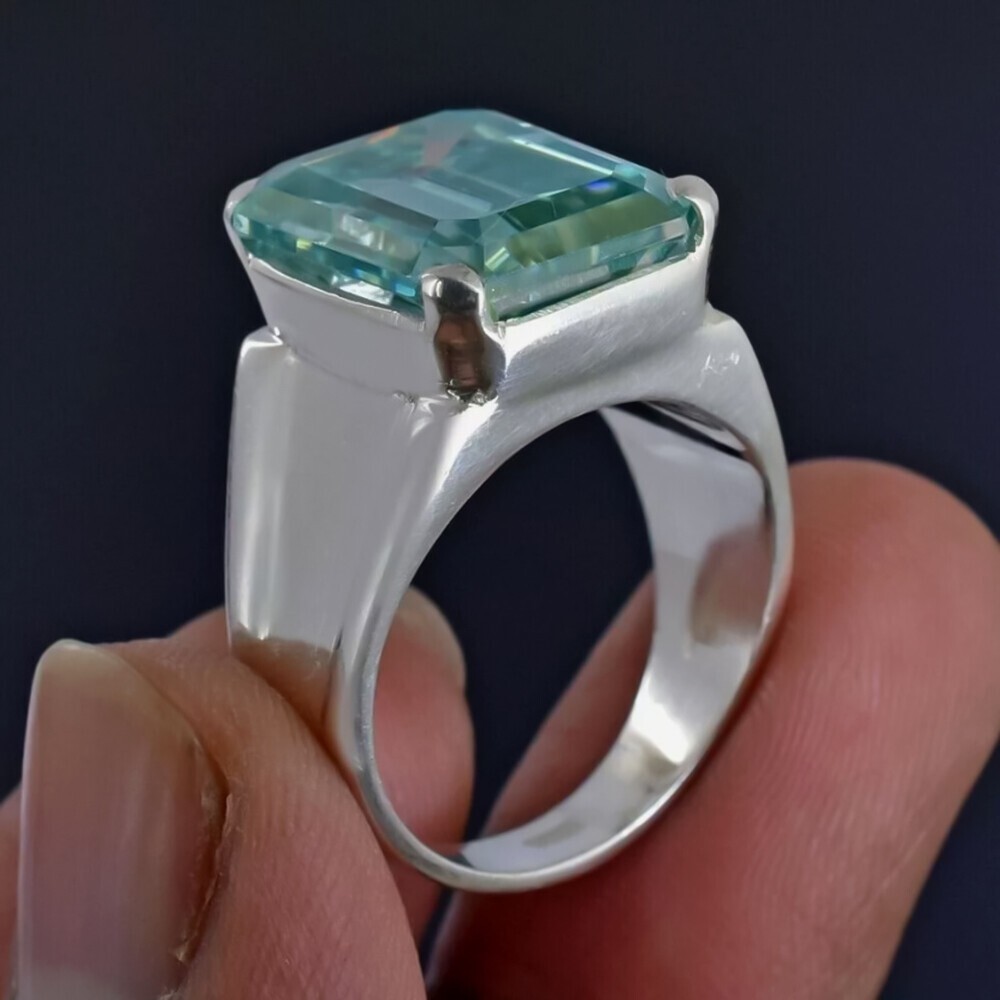 8.00 Ct Princess Cut Blue Diamond Ring for Men in 925 Silver Statement