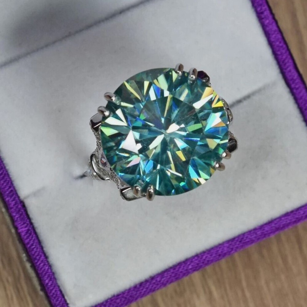 $ 178.078.00 Ct Blue Diamond Emerald Cut 925 Silver Ring Christmas Gift for Girlfriend