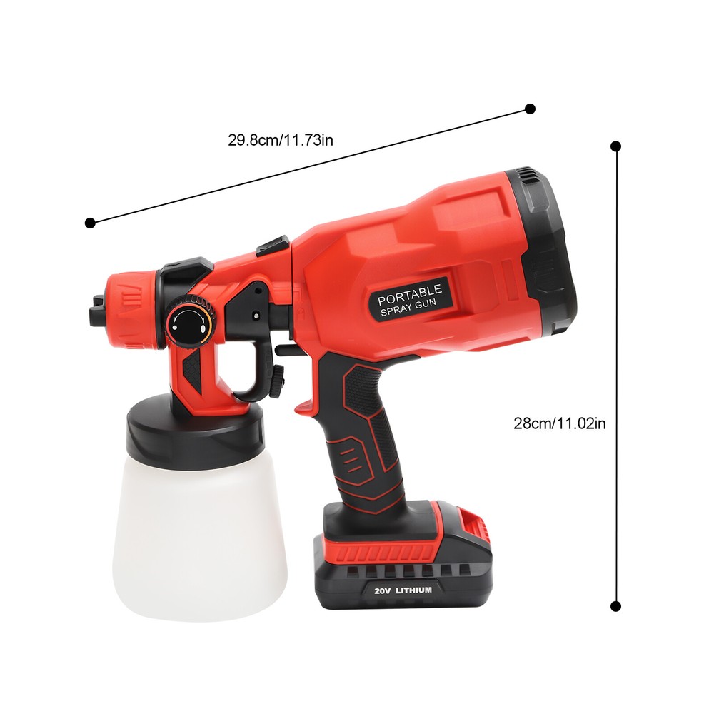 800ML HVLP Paint Sprayer Handheld 120W Electric Spray Gun Tools 3 Spray Patterns DESCRIPTION: A Super Fine Paint Sprayer, Cordless Spray Gun for Countless Painting Projects, 3 Superior Brass Spray Tips, 3 Spray Patterns, 800ml, 160 L/min Application This Product Can Be Used to Spray Paint, Coatings, Formaldehyde Treatment, Family Guardrails, Floors, Furniture, Walls, Vehicles, and Other Surfaces. Key Features ★ Fine Spraying: It is equipped with an atomization adjustment mode to form a fine spray so that the sprayed materials will not have bubbles, and you will save time and energy by covering the spraying area in all directions! ★ Different Sizes of Nozzles: We provide you with three different sizes of nozzles (2.5mm, 1.8mm, 1mm) so that you can choose according to your spraying needs such as furniture, cars, fences, interior walls, garage doors, garden tables and chairs. ★ Multiple Spraying Effects: Each nozzle has three spraying shapes: horizontal, vertical, and dot, which makes it easy to spray horizontal and vertical object surfaces, even edges and corners, bringing you convenience. ★ Convenient to Use: You can adjust the spraying width (20-30cm/7.87-11.81in) and flow (100-200mL/min by adjusting the knob on the machi ne. ★ Move Freely: It uses a lithium battery power supply, so you won't be bound by wires, and you can spray freely even without a socket around! Details 1) Unlock Button: The top of the paint sprayer is designed with an unlock button, which allows you to quickly disassemble the machine and provides convenience for you. 2) Test Funnel: We provide you with a test funnel so that you can test the viscosity of the paint before use so that you can carry out the spraying work more smoothly. Specification Model: Q0P-CX33-380 Color: Red, Black Material: ABS Shell, Copper Core Nozzle, Plastic Spray Jug Usage: Hand-held Voltage: 110V Rated Votage: 18-20V Frequency: 60HZ Rated Speed: 30000rpm Lithium Battery: 20V, 2000mAh Rated Power: 120W Air Flow: 160 L/min Paint Flow: 100-200 ml/min ( 0.026-0.052Gal/ min ) Nozzle Diameter: 2.5mm/ 0.0984in, 1.8mm/ 0.0709in, 1mm/ 0.0394in Spraying Distance: 20-25cm/ 7.87-9.84in Spraying Width: 20-30cm/ 7.87-11.81in Viscosity: 8-12s Spray Jug Capacity: 800ml/ 27.05oz Overall Length of the Product: 29.8cm/ 11.73in Overall Height of the Product: 28cm/ 11.02in Package Size: 26*17*20cm/ 10.24*6.69*7.87in Net Weight: 1.6kg/ 3.53lbs Package Included 1* Paint Sprayer Body 1* Paint Sprayer Head 1* Spray Jug 1* Lithium Battery 1* Charger 1* Funnel 3* Nozzles Other Needed Accessories Notes 1. Please note that it is not recommended to spray emulsion paint on this product, because the effect of spraying will be poor if the dilution is not up to the standard. 2. After receiving the machine, use clean water to test the power and atomization effect of the machine. But please do not test directly with paint or paint. 3. Please adjust the viscosity of the coating before spraying, which is generally applicable to the coating that can flow through the funnel within 20-40s. 4. The spray gun shall be sprayed at a uniform speed. 5. It is recommended to keep the spraying distance about 30cm. 6. When the spray gun is spraying upward, please do not loosen the trigger, or the paint will flow back into the motor, causing damage to the machine. Please do not spray the machine vertically upwards. It is recommended to spray the top at an angle of 45 °. 7. Please clean the spray gun and spray pot in time after use to prevent the nozzle from being blocked due to dry paint. 8. Cleaning Method: put clean water into the watering can and spray it for about 30-60s. Be sure to thoroughly spray the residual dirt in the valve core until clean water is sprayed. DESCRIPTION 2 Welcome to our store for shopping. Our store has a wide range of product categories for you to choose from. Welcome to click on our store to make a purchase or consult us, and we will recommend the products you need.?? ↓↓↓↓↓↓ Payment Delivery details Terms of sales About us Contact us Payment We accept ebay payment 。 Fees such as import duties, taxes are not included in the item price or shipping costs. These charges are the buyer's responsibility. Delivery details Shipping: 2-9 working days to: USA Terms of sales We maintain high standards of excellence and strive for hundred percent customer satisfaction. Feedback is very important to us. We hope that you contact us immediately before you give neutral or negative feedback, so that we can address your concerns. It is impossible to address issues if we do not know about them! About us Your satis faction is our ultimate goal. We work hard to earn your trust and future business. Our certified technicians have tested each item before shipping. The unit comes with 1 year limited warranty on all manufacturing defects. a) If you receive a defective item, you may return it or ask for a discount. Please contact us within 14 days after you receive the package. b) What you returned must be intact and in its original packaging as re? u. Customer is responsible for shipping costs of the returned item. c) We will cover the cost of shipping back t with the shipping rate indicated in the registration page. We will send you a new unit or refund the full payment you paid. Thank you. Contact us Business Hour Business Hour: Monday To Friday: 8:30 AM to 5:00 PM (Beijing China time) Due to time zones, our reply to your questions may not be immediately. But within above working time, we will reply your email within 24 hours. If it's non-workdays, please kindly be patient and wait till Monday. Please contact us with ebay message. Please feel free to contact us if you have any questions. Monday To Friday: 8:30 AM to 5:00 PM (Beijing China time) Due to time zones, our reply to your questions may not be immediately. But within above working time, we will reply your email within 24 hours. If it's non-workdays, please kindly be patient and wait till Monday. Please conta