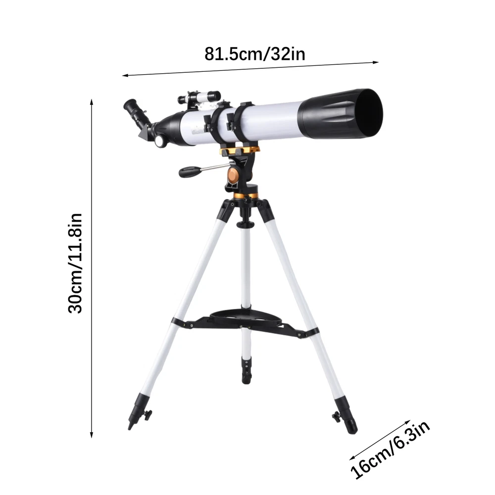 Store category Sign Up Now ! You may also like Product Description Bullet Points: Fully Coated Optical Glass Lenses: Make images pointed and clear with our high-performance telescope for adults astronomy. Our fully coated optical glass lenses with high light transmission coating create stunning images and protect your eyes. Effortless Stargazing: Discover the beauty of the universe with this durable telescope's ability to easily capture breathtaking lunar and planetary images and videos on your phone without a mobile phone adapter. Multiple Functions: Immerse yourself in the awe-inspiring beauty of the galaxies with our adult telescopes. Designed for both avid astronomy enthusiasts and those who simply appreciate outdoor scenery, this multifunctional tool is perfect for stargazing, admiring the moon's craters, delightful city night views, or even bird watching. Easy Setup: Quickly set up and adjust height without tools. Foster hands-on skills and curiosity in stargazing for adults and children. Enjoy the fun of assembly. Precious Gifts: With this high-quality telescope for adults, gift your loved ones the chance to explore the vast universe. Ideal for beginners and perfect for Christmas or birthdays, the recipient will feel your thoughtfulness and curiosity for the universe. Enhance your stargazing experience with the Telescope for Adults. The focal length allows more light to be collected, ensuring optimal clarity while admiring the moon. Equipped with a mobile phone adapter and wireless remote control, capture stunning images with ease. Easy to set up, no additional tools required. The perfect Christmas gift for any astronomy enthusiast. Specification: Objective lens diameter: 90 mm Focal length: 800mm Telescope Installation Instructions: Theodolite Mountain Product size: about 32x6.3x11.8 inches/81.28x16x29.97cm Focus type: manual focus Compatible devices: Smartphones Packing List: 1* Professional Telescope 2* Interchangeable Eyepieces 1* Barlow Lens 1* Tripod 1* Mobile Phone Adapter 1* Carry Bag Payment Delivery details Terms of sales About us Feedback & DSRs Payment Before you palce an order, please kindly make sure that you have a paypal account. We accept PAYPAL payment only. Payment should be completed within 2 days after auction closed, or unpaid dispute will be filed for an closing auction. An unpaid case will be filled after 4 days. Delivery details We ship to your eBay address. Each package will be shipped to US by UPS Regular Parcel with tracking number. Please check your shipping address carefully before checkout, it can't be changed if order completed. All items will be shipped within 1-2 business day upon receipt of payment.Orders placed on weekend will be shipped within 3 days. If you do not receive your item in 7-10 business days.please contact us immediately for further assistance. We will be responsible for any damages or losses incurred in the shipping process. About us We maintain high standards of excellence FIVE STAR and strive for 100% customer satisfaction! Positive Feedback is very important to us. We hope that you contact us immediately Before you give us neutral or negative feedback, so that we can satisfactorily address your concerns. We promise to offer the lowest price and high quality produce. Our working time: From Monday to Friday(9:30 am to 18:00pm), we don't working on holidays ,hope you can understand and know that , thank you. Please always talk to us via ebay Message. We appreciate your business and look forward to growing our e-Bay sales with satisfied customers. Feedback Contact us If you have any questions, please feel free to contact with us by ebay Message during our business hours ( 9:30a.m. to 5:30 p.m.), or email us through eBay, we will try our best to help you to resolve it. For any presale or after-sale questions,please do feel free to email us! Due to the time difference, each email will be replied within 1 working day,and weekend will be delayed a bit. Feedback