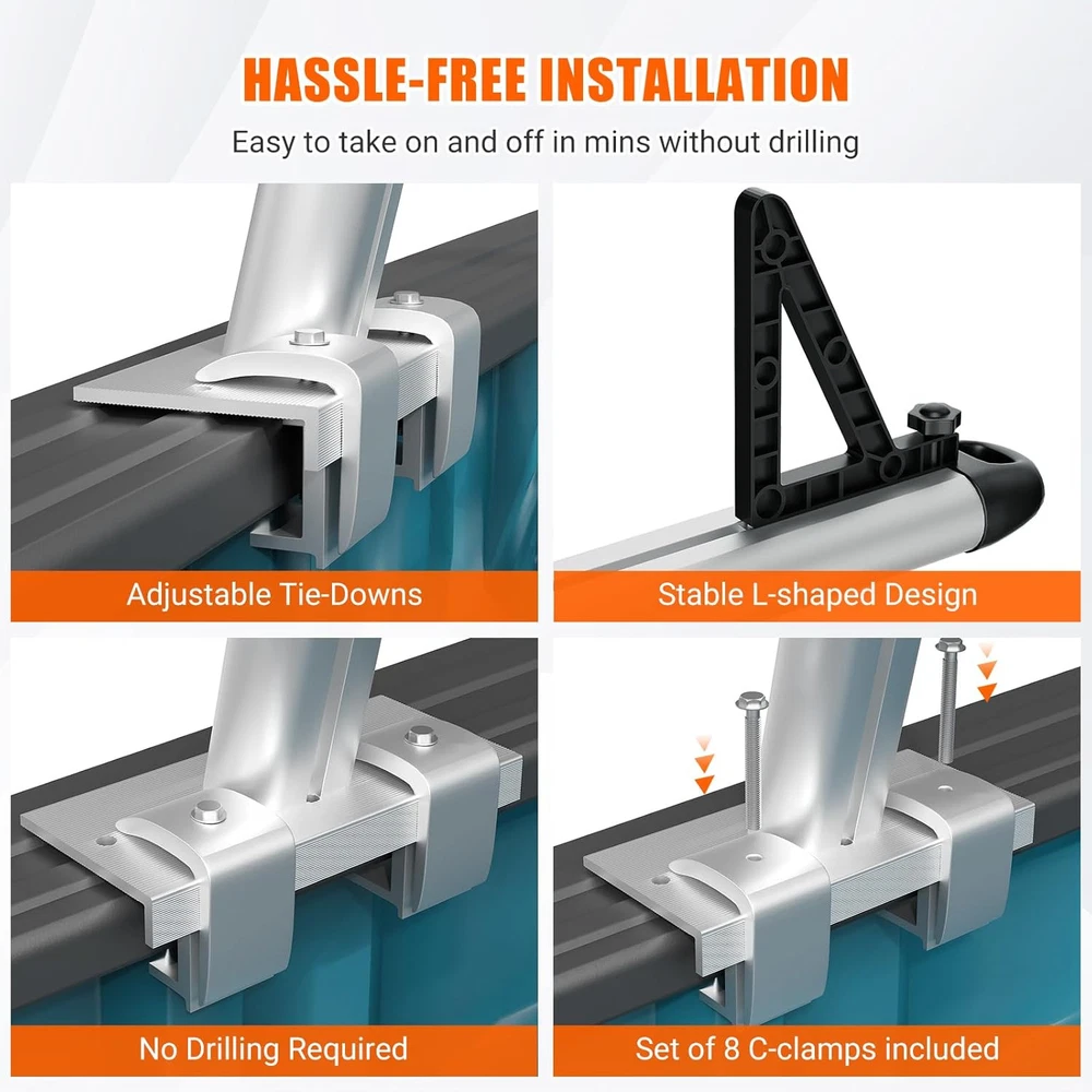 800lb Heavy Duty Aluminum Pick-Up Truck Bed Ladder Rack with C-Clamps for Kayak Description: BUILT TOUGH AND STEADY: The support you deserve is here! Our ladder rack for trucks is constructed from outstanding aluminum material, making it lightweight and durable. And the base brackets are made of heavy-duty steel for enhanced stability in loading bulky items. GAIN MORE SPACE: With our truck bed rack, you will never bother by the lack of extra large storage space in your truck anymore. The max load reaches up to a heavy 800 lbs/363 kg, making it great for transporting kayaks, surfboards, ladders, lumbers and tents, etc. KEEP IT RUST-PROOF: Our pick-up truck rack is powder coated, making it both durable and exquisite. The end caps keep water and debris from entering tubes, effectively making the inside rust-proof and corrosion-proof. Get ready for years of use! DRILL-FREE INSTALLATION : Includes 8 drill-free C-clamps for quick and damage-free mounting to your truck bed, enabling easy setup and removal without tools or modifications. Package Included: 2x Truck Racks Note: Different displays may cause the color of the item in the picture a little different from the real thing. Manual measuring, please allow 1~3mm error,thank you. Payment Delivery details Returns details Feedback Payment We accept Payoneer only. All major credit cards are accepted through secure payment processor PayPal. Payment must be received within 7 business days of auction closing. If you have bought multiple items from me, you can send me one payment for all the items instead of paying for them individually. When you click the Pay Now button, eBay will automatically determine if there are other items you have won or purchased from me and will combine them for your review. NOTE: Import duties, taxes and chargers are not included in the item price or shipping charges. These charges are the buyer's responsibility. Please check with your country's customs office to determine what these additional costs will be prior to bidding buying. Delivery details 1. We will delivery out at the handing time when we receive the payment. 2. The delivery time is 3-5 business days to US by usually time.The parcel maybe delay 1-2day of the weekend.Due to the bad weather,Holidays,Hot Season ect.the parcel maybe delay,If you have any problems,mssage us,we will try our best to solve it. 3. We ship to your eBay address. Please make sure your eBay address is correct before you pay. 4. If you want to change the shipping address,message us before our send out. 5. We cannot deliver your order if your state is PR. Returns details 1. If you donot receive the items at the delivery time,the parcel has broken/missing,Please message us before you open case/return,we will try our best to solve it. 2. We offer a 30 day return policy from checkout winning date. 3. An RMA number is required for all returns. Message us for return instructions. Items Returned without a RMA number will not be processed. 4. Items defective upon receipt must be packaged in their retail packaging as if new and returned with a detailed description of the problem. 5. Return shipping fees are not refundable. We reserve the right to decline any returns if the above guidelines are not followed. Feedback If you are not satisfied with the item for any reason, please do not quick to leave negative/neutral feedback even open request and case without any communication with us. We devote ourselves making EVERY CUSTOMER in 100% Satisfactory and resolve any problem. Thank you for your understanding and recognition,we are always leave positive feedback to all our customers. Reply: All replies will be sent to your email box, if you do not get response within 24 hours (Sat. & Sun. excluded) please check your eBay My Messages in case that our emails will be filtered automatically by your settings. Attachment Type Clamp Brand Unbranded Items Included Mounting Hardware Universal Fitment Yes Material Aluminum Tube Diameter 1.6 in/40 mm Loading Capacity 800 lbs/363 kg Quantity 2 PCS Color Silver Type Truck Rack Item Length 71'' Features Fixed Height Maximum Weight Capacity 800 lbs/363 kg