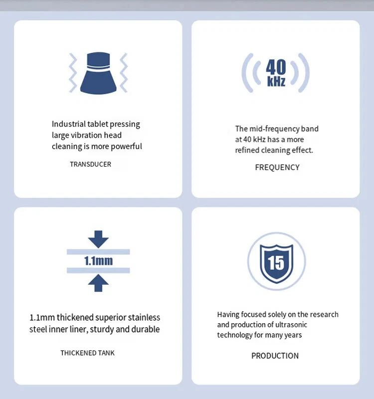 Steps to use: Open the product packaging and plug it in and use it 1. Connect the product to electricity, inject an appropriate amount of cleaning liquid into the tank, and flood the product. If the standard version is used, it is necessary to ensure that the liquid reaches 2/3 of the inner tank. 2. Soak the items to be cleaned in the liquid, and then select the corresponding time gear. Choose the items to be worn daily for 3-5 minutes. The specific time can be flexibly adjusted according to the degree of the product dirt or cleaned multiple times. 3. After the time is selected, press the "Switch" key and the machine makes a sizzling sound that the ultrasonic cleaning working mode has been turned on. 4. After cleaning, take out the object, pour out the dirty liquid in the inner tank and wipe it dry. (The cleaning basket can be used as needed, and it will not affect the cleaning satisfaction) Kind tips: 1. Do not clean the main body of the watch. Even if the waterproof watch is water-invaded or the parts may be damaged due to ultrasonic vibration. 2. Other valuable items: precious glasses, sunglasses (such as coatings), jewelry, etc. Please check the product before cleaning to confirm whether it can be cleaned by a washing machine to avoid damage.
