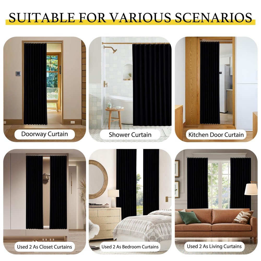 We all love Door Curtains for the way they make our home elegant and welcoming. Product Info.: The door curtain package comes with 1 panel and Hooks. Each panel measures 38 inches wide by 80 inches long. The length excludes the rings.It's easy hanging and removing on an existing rod. Genius Idea of Door: Are you tired of all the same doors? Depressed by small Spaces? Shy away from expensive doors? Need more conveniently pass through? Now you don't have to worry, we offer a brand new temporary door, this easy install soft blackout drape is perfect for you instead of doors now. Fabric Function: No formaldehyde, no chemical coating, no pungent smell, high-quality material is safe for babies and small kids. Blackout curtain liners block out sunlight, harmful UV rays, noise, and heat while offering privacy. Versatile Home Decor: Use the simple, modern and soft drapery as an exterior door curtain or interior door curtain between kitchen, dining room, bedroom, living room, patio glass door, and closet, hallway. Easy Care: blackout curtains are made to last. Machine washable in normal temperature water, use mild detergent, no bleaching, tumble or natural dry. Steam ironing can easily remove the wrinkles or any fold marks.