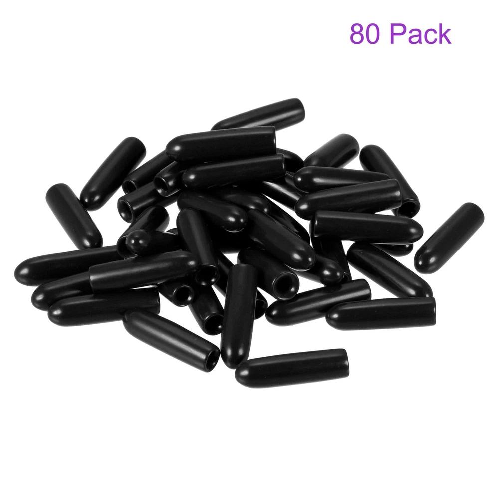 80-Pack 5.5mm Black Rubber Screw Thread Caps for Bolt Protection