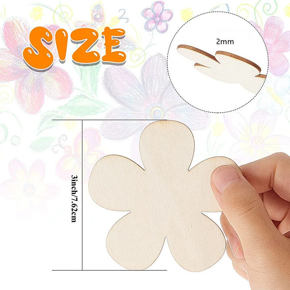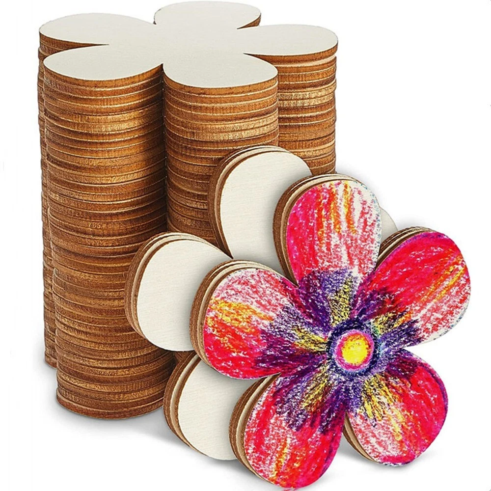 80Pcs Flower Shape Blank Wood Chips Blossom Painted Graffiti Wooden Pieces6009