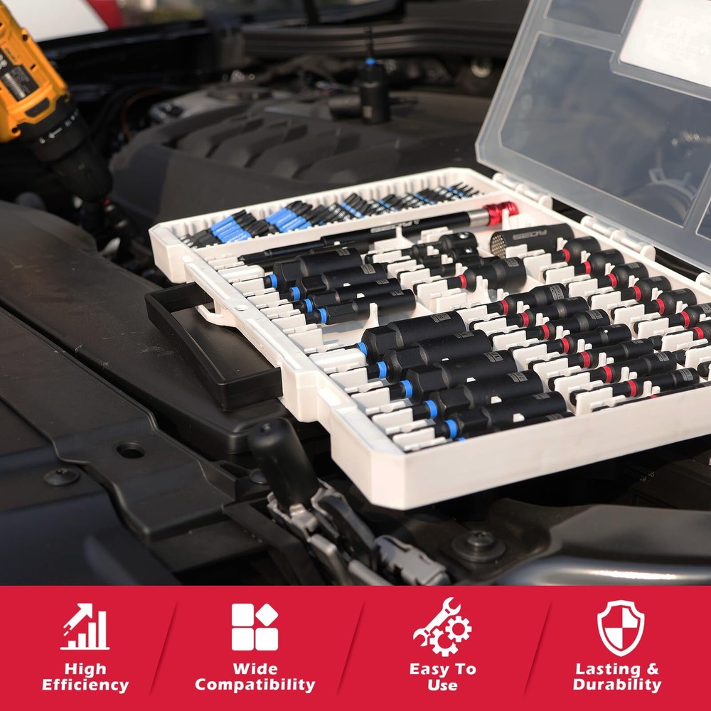 This set is a game-changer for any DIYer or pro! The magnetic tips keep nuts securely in place, and the variety of metric and SAE sizes covers almost any job. The quick-release extension and universal sockets make switching bits a breezeβno more fumbling mid-task. The sturdy case keeps everything organized, and the impact-rated bits handle tough jobs without stripping. Worth every penny for the quality and convenience!