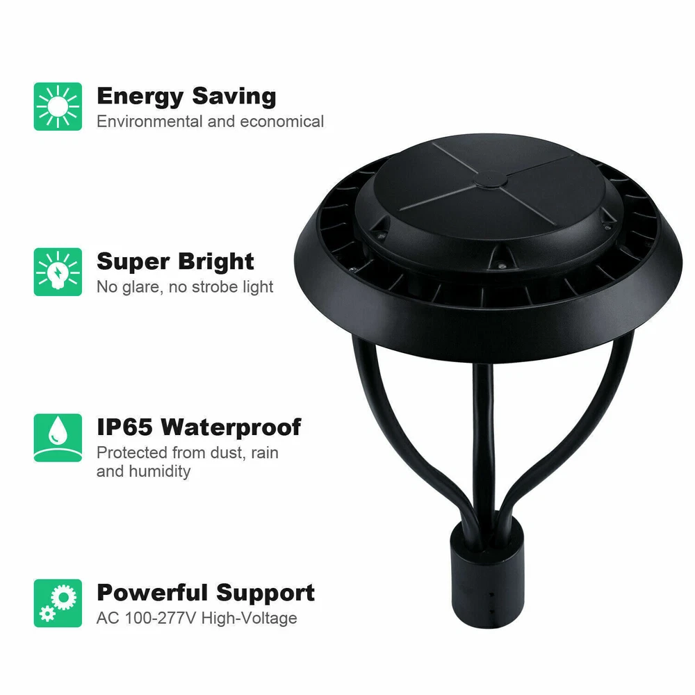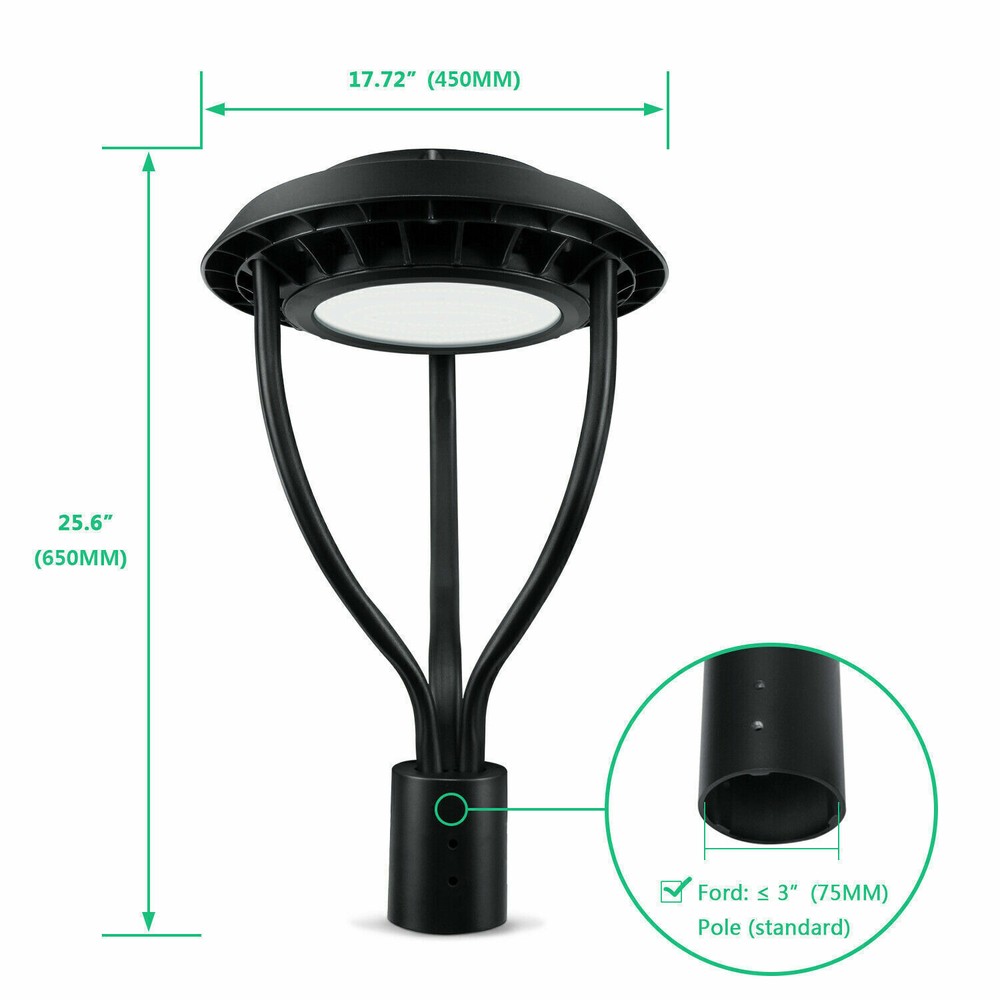 Product Description 80W LED Garden Street Circular Area Post Top Light DLC ETL Listed 400W MH Equal Light Up Larger Area - The 80w light post bring 8100Lm with SMD3030 chips, up to 135lm/watt, AC 100-277V universal voltage and 120°beam angle. 5000K color temperature of lighting is a nice choice for street light illumination. Anti-shock, anti-moisture, no glare, no strobe light, no ghosting, protecting your eyes. Excellent Performance - High power factor >0.9, more than 50000hours lifespan, reduce your electricity consumption, save your electronic bill. Provides a continuous, efficient outdoor lighting environment. Commercial Grade Material - The DLC/ETL Listed post pole light fixture made of die-casting aluminum body + protective glass cover. The scientific design helps the exterior light post top to dissipate better, achieve the best use of the led lighting post. IP65 waterproof for drying, wet environment, sandstorms, snowstorms, and harsh weather conditions. Wide Application - The circular post top design give the lamp a uniform brightness and can be applied to a variety of outdoor scences, such as pathway, street, front yard, city expressway, trunk/rustic road, factories, playground, school, garden, courtyard, parking lot, public park, walkway, exterior, driveway, store, farmyard or any other commercial and industrial area. Installation and Warranty - The pole mount of our post area light fits for a 2 3/8-inch OD tenon & less than or equal to 3 inch standard pole, very easy to install and transfor(Please see the video on the product page for more installation info). KUKUPPO offer you lasting safety and reliability backed by a 5-year warranty. For a bulk order, email us in advance to get a different offer. Specifications: Rated Wattage: 80W Luminous Flux: 10800Lm Color Temperature: 5000K Protection Grade: IP65 Material : Aluminum Body+Glass Cover Input Voltage : AC100-277V 50/60Hz Dimension: Dia 460x625 mm Base: 2 Pins Wire Power Factor: >90% Beam Angle : 120 degrees Average Lifetime : More than 50000 hours Flexible Installation The pole mount of our post area light fits for a 2 3/8-inch OD tenon & less than or equal to 3 inch standard pole, very easy to install and transfor Commercial Grade Material DLC/ETL Listed quality. Scientific design helps the exterior light post top to dissipate better, achieve the best use of the led lighting post. Durable Support Rod Made of thick aluminum, stable and strong, waterproof and rustproof. High performance quality provides with lasting safety and reliability. Ultra Bright LED Chips With SMD3030 chips, up to 140lm/watt. Anti-shock, anti-moisture, no glare, no strobe light, no ghosting, protecting your eyes. Kindly Note Please note that the light can not be used IN the water. Please confirm the wire connection is right while installing. About Us Payment Shipping Returns Contact Us SHENZHEN NUOGUAN TECHNOLOGY CO. LTD founded in 2010. We are high-technology comany specialized in manufacture Commercial and industrial LED light. Advanced production equipment and excellend R&D ability help us to combining service ,production sell together provide top-level products to our customers. 1. Payment is expected within 7 days of auction close. Or Unpaid Items will be forfeited per eBay . 2. Taxes may be applicable at checkout as states adopt new laws and regulations regarding sales tax collection. 1. We ONLY ship to USA . 2. Orders processed within 1-2 business day of payment verification. There’s no Delivery service or courier service on Saturdays, Sundays or Public Holidays. 3. We have 3 different warehouse in US,so due to stock status and time differences, we will choose to ship your item from our first available warehouse for fast delivery. 4. We offer Free Shipping within the Lower 48 states! All packages are sent via UPS or USPS.The delivery time for UPS Ground is typically 2-5 business days. We strive to ensure 100% satisfaction for each and every one of our customers. we offer a 30-day 100% money-back guarantee on all eBay orders. If your item isn't just as you wished, simply send it back to us and we'll refund or replace your item. Please note that all returns must be authorized by our Customer Service department. please contact us though message first if you have any problem. USA Warehouse. Fast shipping! We are appreciated your purchasing form our eBay store. Office Time: 9:30 - 18:30, Monday - Saturday (UTC+8) Please contact us with eBay Message. We will respond you within 24 hours on business day. About Us SHENZHEN NUOGUAN TECHNOLOGY CO. LTD founded in 2010. We are high-technology comany specialized in manufacture Commercial and industrial LED light. Advanced production equipment and excellend R&D ability help us to combining service ,production sell together provide top-level products to our customers. Payment 1. Payment is expected within 7 days of auction close. Or Unpaid Items will be forfeited per eBay . 2. Taxes may be applicable at checkout as states adopt new laws and regulations regarding sales tax collection. Shipping 1. We ONLY ship to USA . 2. Orders processed within 1-2 business day of payment verification. There’s no Delivery service or courier service on Saturdays, Sundays or Public Holidays. 3. We have 3 different warehouse in US,so due to stock status and time differences, we will choose to ship your item from our first available warehouse for fast delivery. 4. We offer Free Shipping within the Lower 48 states! All packages are sent via UPS or USPS.The delivery time for UPS Ground is typically 2-5 business days. Returns We strive to ensure 100% satisfaction for each and every one of our customers. we offer a 30-day 100% money-back guarantee on all eBay orders. If your item isn't just as you wished, simply send it back to us and we'll refund or replace your item. Please note that all returns must be authorized by our Customer Service department. please contact us though message first if you have any problem. Contact Us USA Wa