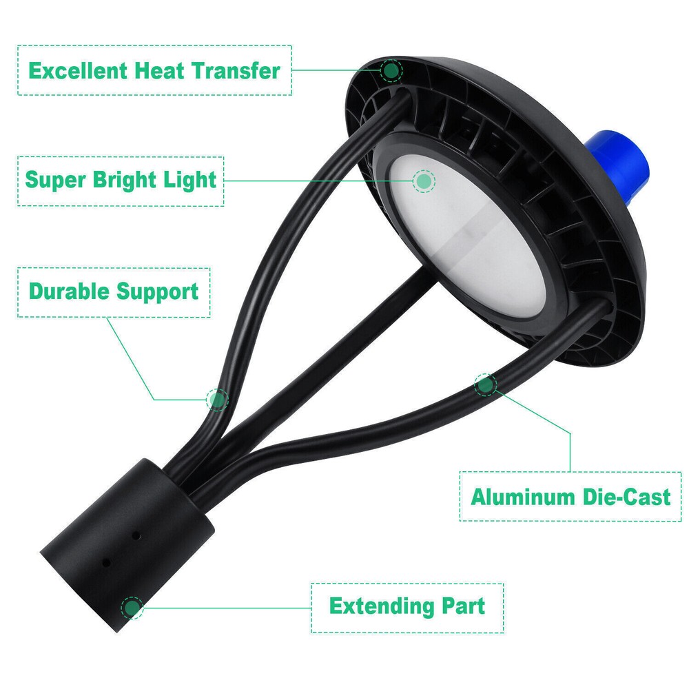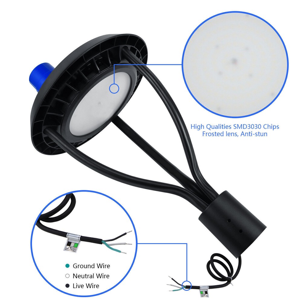 Product Description 80W LED Post Top Light(300w MH HID Equal)for Garden Pathway Yard Street Security Light Up Larger Area - The 80w light post bring 10800Lm with SMD3030 chips, up to 135lm/watt, AC 100-277V universal voltage and 120°beam angle. 5000K color temperature of lighting is a nice choice for street light illumination. Anti-shock, anti-moisture, no glare, no strobe light, no ghosting, protecting your eyes. Dust to Dawn Photocell - The Led circular post top pole light comes with photocell sensor outside automatically turns ON at sundown/night and light post at sunrise/daytime with dusk to dawn, high power factor >0.9, more than 50000hours lifespan, reduce your electricity consumption, save your electronic bill. Provides a continuous, efficient outdoor lighting environment. Commercial Grade Material - The DLC/ETL Listed post pole light fixture made of die-casting aluminum body + protective glass cover. The scientific design helps the exterior light post top to dissipate better, achieve the best use of the led lighting post. IP65 waterproof for drying, wet environment, sandstorms, snowstorms, and harsh weather conditions. Wide Application - The circular post top design give the lamp a uniform brightness and can be applied to a variety of outdoor scences, such as pathway, street, front yard, city expressway, trunk/rustic road, factories, playground, school, garden, courtyard, parking lot, public park, walkway, exterior, driveway, store, farmyard or any other commercial and industrial area. Installation and Warranty - The pole mount of our post area light fits for a 2 3/8-inch OD tenon & less than or equal to 3 inch standard pole, very easy to install and transfor(Please see the video on the product page for more installation info). KUKUPPO offer you lasting safety and reliability backed by a 5-year warranty. For a bulk order, email us in advance to get a different offer. Specifications: Rated Wattage: 80W Luminous Flux: 10800Lm Color Temperature: 5000K Protection Grade: IP65 Material : Aluminum Body+Glass Cover Input Voltage : AC100-277V 50/60Hz Dimension: Dia 460x625 mm Base: 2 Pins Wire Power Factor: >90% Beam Angle : 120 degrees Average Lifetime : More than 50000 hours Flexible Installation The pole mount of our post area light fits for a 2 3/8-inch OD tenon & less than or equal to 3 inch standard pole, very easy to install and transfor Commercial Grade Material DLC/ETL Listed quality. Scientific design helps the exterior light post top to dissipate better, achieve the best use of the led lighting post. Durable Support Rod Made of thick aluminum, stable and strong, waterproof and rustproof. High performance quality provides with lasting safety and reliability. Ultra Bright LED Chips With SMD3030 chips, up to 140lm/watt. Anti-shock, anti-moisture, no glare, no strobe light, no ghosting, protecting your eyes. Kindly Note Please note that the light can not be used IN the water. Please confirm the wire connection is right while installing. About Us Payment Shipping Returns Contact Us SHENZHEN NUOGUAN TECHNOLOGY CO. LTD founded in 2010. We are high-technology comany specialized in manufacture Commercial and industrial LED light. Advanced production equipment and excellend R&D ability help us to combining service ,production sell together provide top-level products to our customers. 1. Payment is expected within 7 days of auction close. Or Unpaid Items will be forfeited per eBay . 2. Taxes may be applicable at checkout as states adopt new laws and regulations regarding sales tax collection. 1. We ONLY ship to USA . 2. Orders processed within 1-2 business day of payment verification. There’s no Delivery service or courier service on Saturdays, Sundays or Public Holidays. 3. We have 3 different warehouse in US,so due to stock status and time differences, we will choose to ship your item from our first available warehouse for fast delivery. 4. We offer Free Shipping within the Lower 48 states! All packages are sent via UPS or USPS.The delivery time for UPS Ground is typically 2-5 business days. We strive to ensure 100% satisfaction for each and every one of our customers. we offer a 30-day 100% money-back guarantee on all eBay orders. If your item isn't just as you wished, simply send it back to us and we'll refund or replace your item. Please note that all returns must be authorized by our Customer Service department. please contact us though message first if you have any problem. USA Warehouse. Fast shipping! We are appreciated your purchasing form our eBay store. Office Time: 9:30 - 18:30, Monday - Saturday (UTC+8) Please contact us with eBay Message. We will respond you within 24 hours on business day. About Us SHENZHEN NUOGUAN TECHNOLOGY CO. LTD founded in 2010. We are high-technology comany specialized in manufacture Commercial and industrial LED light. Advanced production equipment and excellend R&D ability help us to combining service ,production sell together provide top-level products to our customers. Payment 1. Payment is expected within 7 days of auction close. Or Unpaid Items will be forfeited per eBay . 2. Taxes may be applicable at checkout as states adopt new laws and regulations regarding sales tax collection. Shipping 1. We ONLY ship to USA . 2. Orders processed within 1-2 business day of payment verification. There’s no Delivery service or courier service on Saturdays, Sundays or Public Holidays. 3. We have 3 different warehouse in US,so due to stock status and time differences, we will choose to ship your item from our first available warehouse for fast delivery. 4. We offer Free Shipping within the Lower 48 states! All packages are sent via UPS or USPS.The delivery time for UPS Ground is typically 2-5 business days. Returns We strive to ensure 100% satisfaction for each and every one of our customers. we offer a 30-day 100% money-back guarantee on all eBay orders. If your item isn't just as you wished, simply send it back to us and we'll refund or replace your it