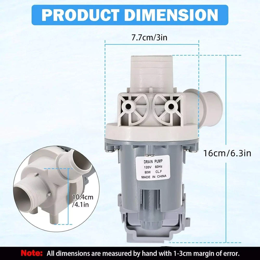 SAFE & SECURE SHOPPING 100% SATISFACTION GUARANTEED FAST SHIPPING Store Categories Store Categories You may also like 80W Washer Drain Pump Assembly for Kenmore 4681EA1007A Replacement Product Description Features: Perfect fit: Replace old or damaged drainage pump components directly, ensuring an exact match to the original equipment, and quickly restore the original drainage efficiency and performance of the washer without any additional modifications or adjustments. High-quality materials: The selection of high-quality materials and advanced processes to ensure that the motor has excellent wear resistance, corrosion resistance, and long-term stable operation in wet and detergent environment. Long life design: After rigorous testing and verification, to ensure that the component has a long service life, reduce the failure rate, reduce maintenance and replacement costs, bring you a more economical use experience. Quick installation: Users can easily replace the drainage pump components, without complex tools or professional skills, and enjoy convenient DIY fun. Specifications: OEM Part Number: DP040-012 Voltage: AC120V Power: 80W Frequency: 60Hz Replacement Part Number: 4681EA1007A, 2649379, AP5672914, PS7785119, EAP7785119 Compatible Brands: For LG, for Kenmore Compatible Models: WT1001CW, WT1201CV, WT1201CW, WT4870CW, WT1501CW, WT5270CW, 79631513210, 79629278000, 79629002000, 79629002010, 79629272000, 79629272010, etc. Package Included: 1pcs Drain Pump Assembly Shipping Returns Contact Us Payment Shipping We ship most of our orders within 24 hours, and may up to 48 hours. If you want faster shipping way, please contact us before making a payment. Sometimes due to problems with our transportation company system, your shipping information may be delayed to update. We recommend that you try again after 3-4 days. If you still haven't checked the shipping information, you can contact us via ebay message. Returns 1. 30 days warranty from the purchased date. Please contact us via email before returning the defective item. 2.Our warranty does not extended to any product that are physically damaged or that are not under normal operating conditions as result of misuse or improper installation on the buyer/user's part. 3.Return items should include the original packaging and all accessories. buyers MUST contact us for the returning address. 4.In all cases, buyers pay shipping fees at their own cost to return products for exchange or refund. We will be responsible for the postage of replacements. Refund will be made upon receipt of the returned item. Contact Us Pls contact us if you have any problems,we will try our best to solve for you Payment We accept all verified payment from eBay. Copyright © 2022 Tongtool
