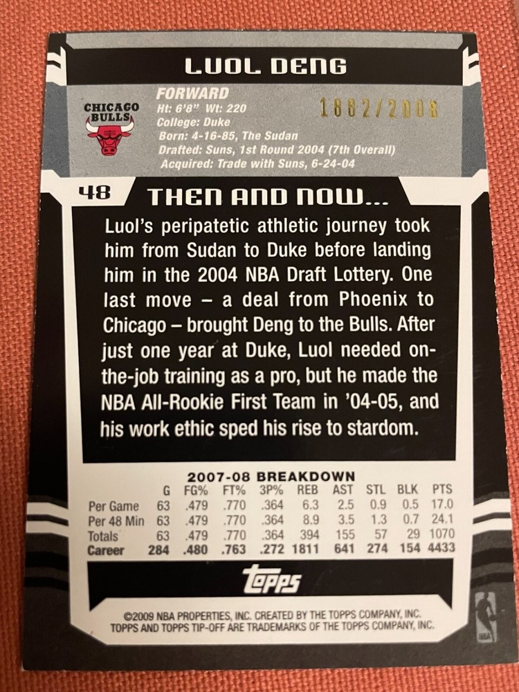 Seller Notes: “Pack Pulled. Conditions vary most are NM-MT.” Manufacturer: Various Original/Licensed Reprint: Original League: National Basketball Association (NBA) Card Size: Standard Team: Chicago Bulls, Duke Blue Devils Event/Tournament: NBA Finals Autographed: No Player/Athlete: Loul Deng Language: English Material: Card Stock Country/Region of Manufacture: United States Year Manufactured: 2006 Number of Cards: 80 Season: Various Features: 1st Edition, Base Set, Chase, Checklist, Exclusive, Hologram, Insert, Limited Edition, Parallel, Rookie, Short Print, Sketch, Sticker, Die Cut Sport: Basketball Set: Various Vintage: No Type: Sports Trading Card