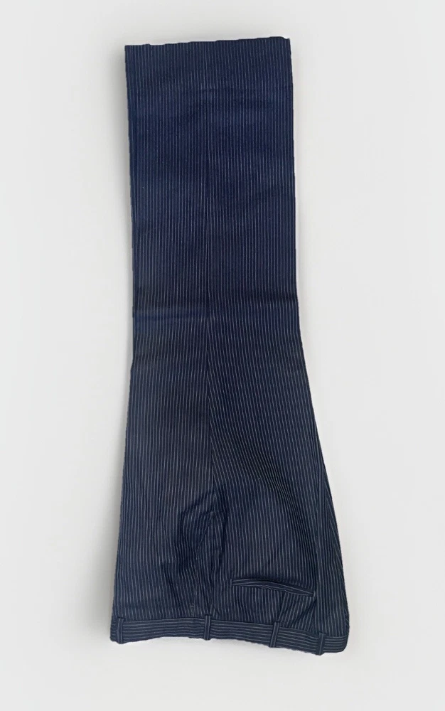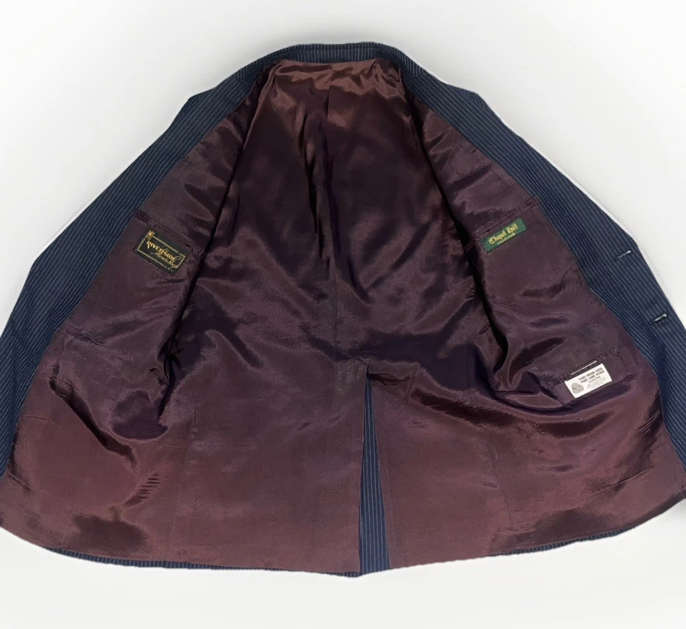 Rare and Sophisticated Piece From Aug 18th 1987. My Husband actually put it on and Not Only Did it Fit him Perfectly, it Literally Made his Person POP! A Beautiful Piece that Turns you into a Model! (Real and Solidly Authentic Wool) Elevate your wardrobe with the timeless sophistication of the 80's Vintage Men's Blue Wool Pinstripe 2 Piece Suit from Riverside Men’s Shop New York. The classic fit ensures comfort without compromising on style, featuring a single-breasted design that adds a touch of elegance to any ensemble. Crafted from high-quality wool, this suit boasts a striking blue hue with a subtle striped pattern that exudes a sense of refinement. Ideal for various occasions, the two-piece set, sized at 40 Regular with a W34, offers a seamless blend of function and fashion, making it a must-have for the discerning gentleman's collection.
