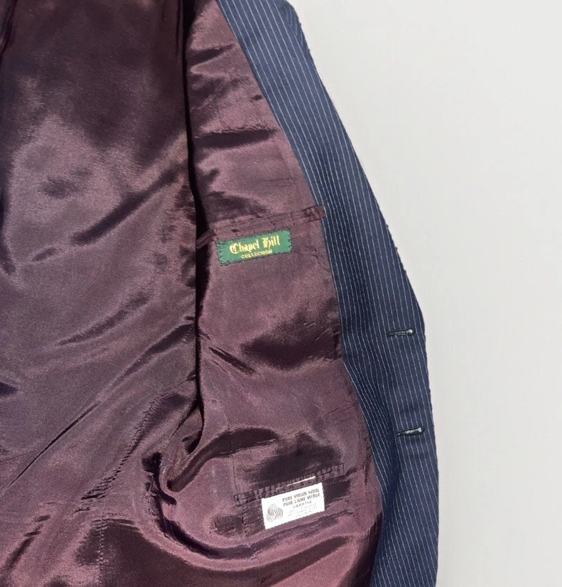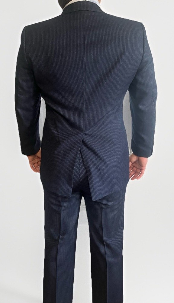 Brand: Bradmore Theme: Classic Material: Wool Number of Pieces: 2 Piece Chest Size: 40 Pattern: Striped Style: 3 Piece Fit: Classic Type: Suit Jacket Cut: Single-Breasted Department: Men Jacket/Coat Length: Regular Size Type: Regular Color: Blue Size: 40
