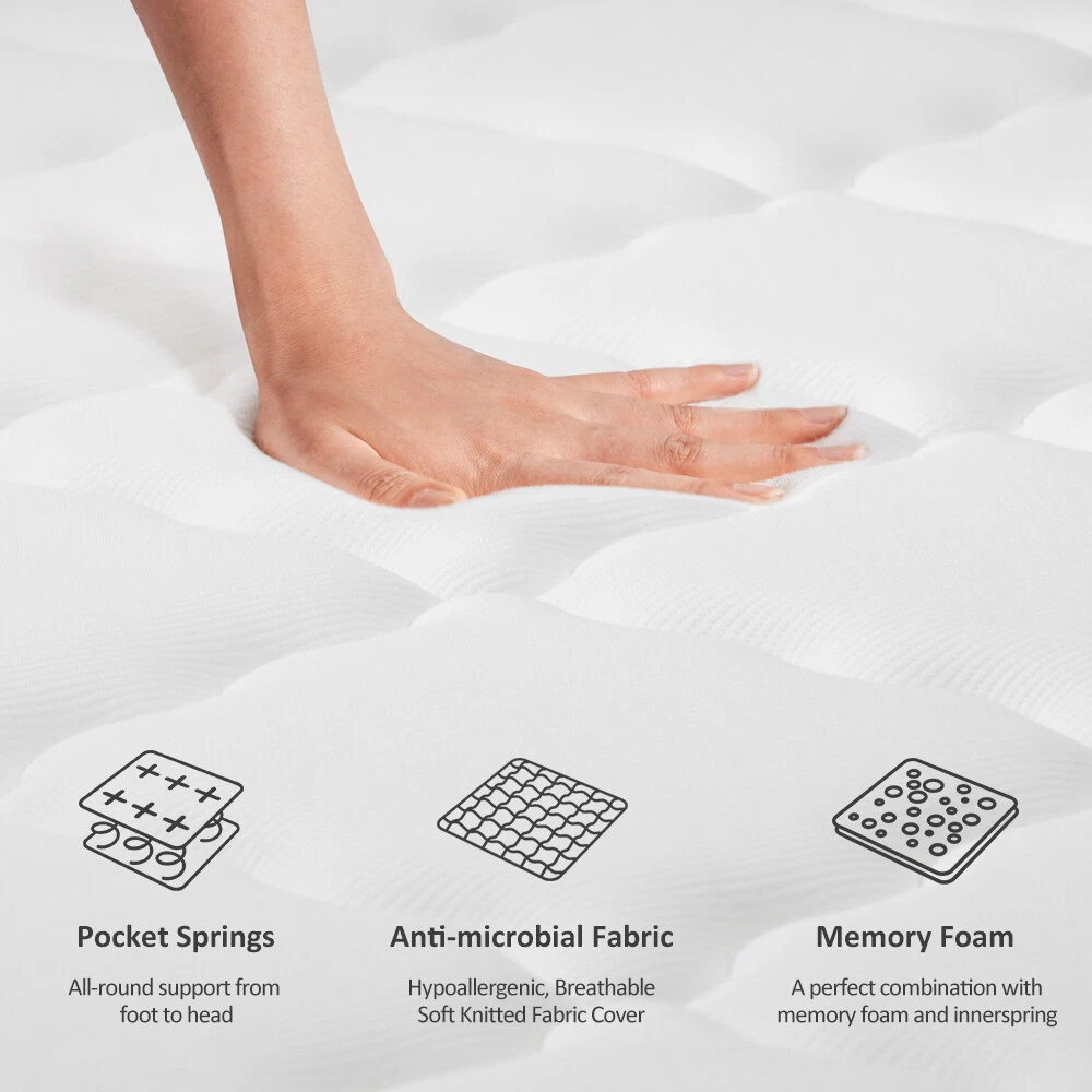 Type: Pocket Spring MPN: Does not apply Product Line: Kescas Color: White Pattern: Geometric Country/Region of Manufacture: Unknown Labels & Certifications: CertiPUR-US, STANDARD 100 by OEKO-TEX Time Period Manufactured: 2024 Theme: Luxury Style: mattress Year Manufactured: 2024 Cover Material: Cotton/Cotton Blend Brand: Kescas Manufacturer: Serweet Manufacturer Warranty: 10 Years Features: Airy Fabric, Antibacterial Cover, Breathable, Cooling Technology, Edge Support, Microcoils, Motion-Isolation, Orthopedic, Pillow Top, Relieve Pain, Air Vent Custom Bundle: No Model: KTA Care Instructions: Clean with Upholstery Shampoo Firmness: Medium Firm Room: Bedroom Department: Adults, Kids, Teens Mattress Breathability: Medium Shape: Rectangle