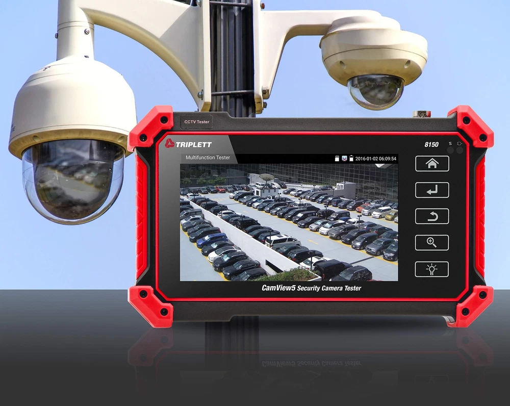 The 8150 CamView IP Pro 5 has a 5 inch IPS touch screen monitor and is designed for the maintenance and installation of IP cameras, analog cameras, TVI, CVI, AHD cameras, as well as for testing 4K H.264 /H.265. The 1920 x 1080 resolution enables it to display network HD cameras and analog cameras in high resolution. The unit supports ONVIF PTZ and analog PTZ control and is compatible with more than 30 protocols. The combination of touch screen and key buttons make the CamView IP Pro 5 very user-friendly. Other functions include providing 24W PoE power to your camera, PING and IP address searching, DC 12V 3A power output, HDMI output and much more. Its portability, user-friendly design and many other functions make the IP tester an essential tool for all installers and technicians. Comes complete with Li-ion battery, AC adapter/charger, DC power cable, BNC cable, RS485 cable, audio cable, wrist strap, and carrying case. Compact and lightweight 8MP tester (1080p) with HDMI, BNC, and RJ45 ports; PoE (24W), DC power output (12V/3A), and HDMI output Works with IP cameras, analog cameras, TVI, CVI, AHD cameras, as well as for testing 4K H.264 /H.265 Connect to WiFi cameras and to create a WiFi hotspot; Ookla speed test Auto-recognize HD coax camera type and resolution Cable Testing - RJ45 TDR cable test and cable quality test; UTP cable test detects opens, shorts and miswires