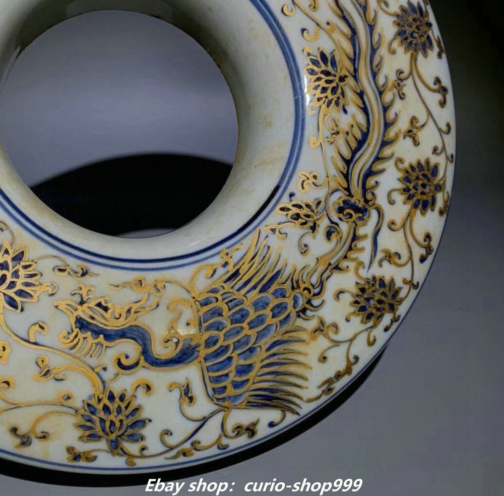 8.2" Ming Xuande Blue White Porcelain Gilt Phoenix Bird Circular Chaozhu Box