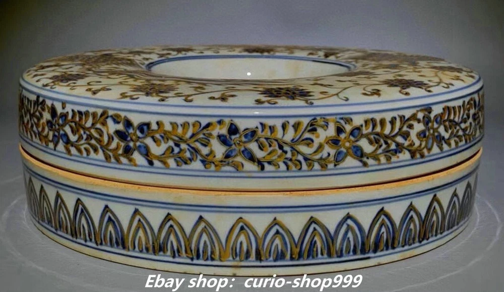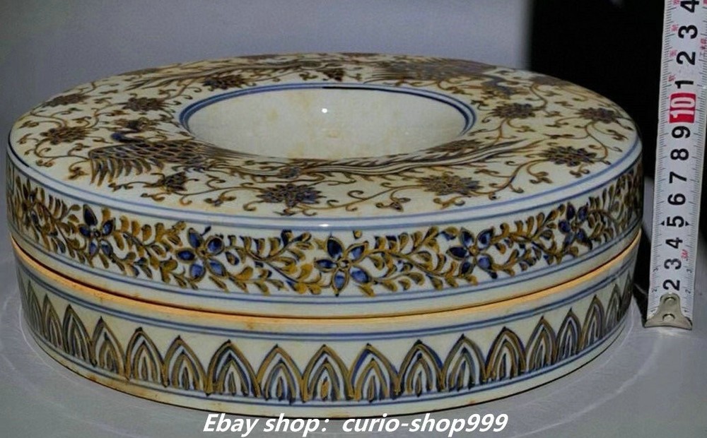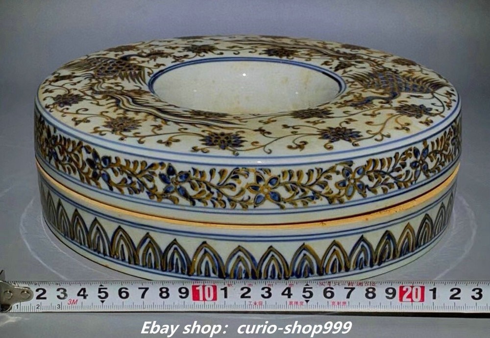 **** Welcome to our antique & Collectable Shop : Porcelain**** Description: Here is 8.2" Ming Xuande Blue White Porcelain Gilt Phoenix Bird Circular Chaozhu Box. It is in good condition, and was created by skilled craftsmen in traditional style with fine handcrafts.This is a great piece of valuable collection, a valuable personal alter or a very good present. the handwork is very fine with incredible detailling. Don't miss out this chance to get it.Wish you good luck! . Material : Blue White Porcelain Gilt Style : Same as photos showing Size : Heigh t 3.5 Long 8.2 B readth 8.2 (inch) Condition Perfect Condition. Perfect, with no scratches, flaws or repairs. Weight: 2.7 KG----included the weight of packing materials Shipping cost to all over the world countries in Free Honored Customers: We are selling the collectibles products and crafts in Beijing ,China since 1993 and collected them all over the world all the time . In our shop the bronze sculpture, animal, vase, urn, flowerpot,Incense Burner.Table chair sets. Militaria goods. buddha statues, Bodhisattva Statues, Buddhist Ritual Items etc is our speciality .Many of the items we sell come from our own personal collection and have been in our family for a very long time .My great-grandfather was the first in this family to start collecting art & antiques when he still lived in San Xi and Tibet around 1922 ,some of the paintings he once collected can now be seen in museums around the globe.We won't make money from t he shipping cost, if you dislike the item when you receive it,we can refund all of your money to you within thirty days. Please confidence for bidding . 70 We recommend the combine shipping and offer you an big price discount if you order more items together ! 2025.1.02 四 号