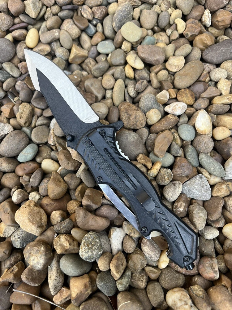 Tactical Black Folding Pocket Knife | 8.25" Drop Point Blade | Bottle Opener | Window Breaker | 30-Day Guarantee This tactical black folding pocket knife is your ultimate everyday carry (EDC) companion. Built for durability and performance, it features a sleek black finish and a sharp 3.5-inch drop point blade, perfect for various tasks. The integrated bottle opener and window breaker make it an essential tool for outdoor adventures, emergencies, or everyday convenience. Key Features: Tactical Black Finish: Sleek and durable design. 8.25" Overall Length: Compact and portable. 3.5" Drop Point Blade: Versatile cutting edge. Bottle Opener: Enjoy your favorite beverages on the go. Window Breaker: Essential safety tool for emergencies. Folding Design: Safe and convenient carry. 30-Day Money Back Guarantee: Purchase with confidence. Whether you're camping, hiking, or simply need a reliable tool for daily use, this tactical pocket knife delivers. Its compact size and lightweight construction make it easy to carry, while its robust build ensures long-lasting performance. Plus, with our 30-day money-back guarantee, you can purchase with confidence. Don't miss out on this essential tool for your outdoor gear or everyday essentials.