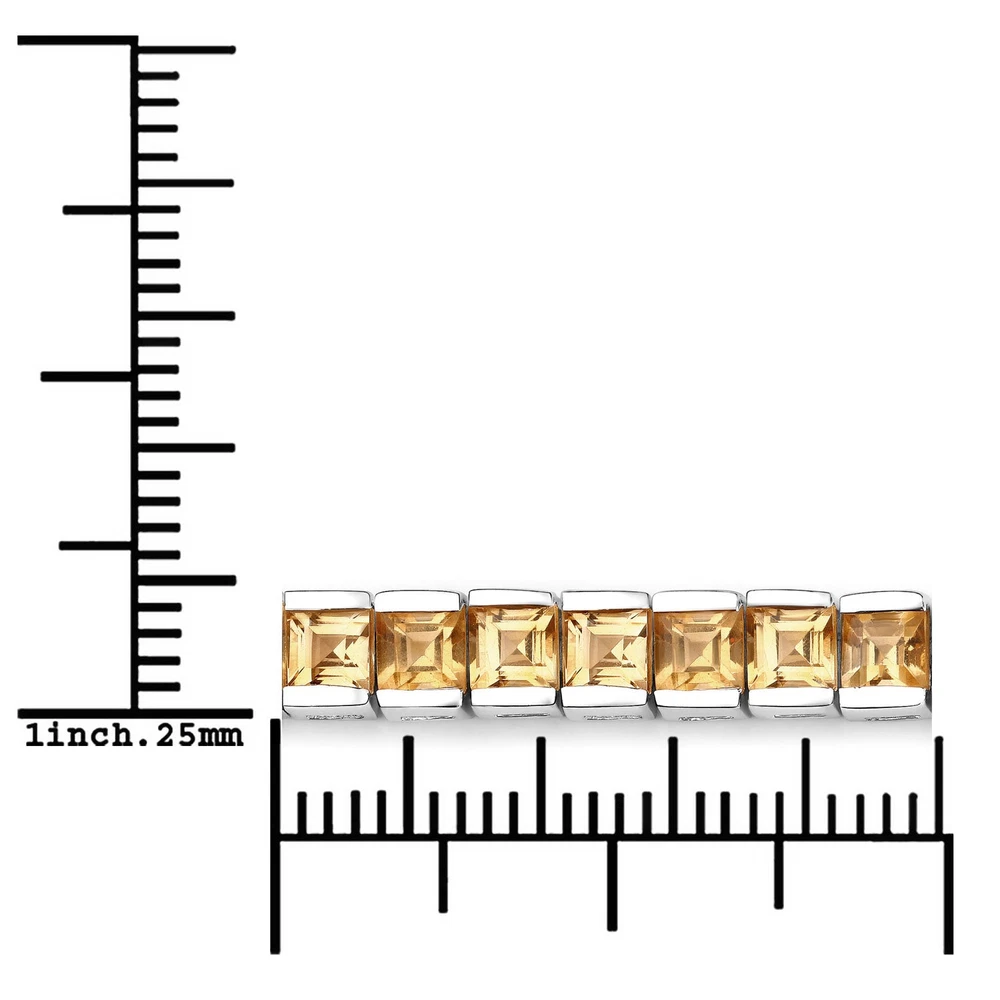 Citrine:Square/3.00mm 55/8.25 ctw Specifications: Gem wt. (Carat): 8.25 Gross wt. (gms): 13.05 Height: 0.15 Inches Length: 7.00 Inches Metal: .925 Sterling Silver Metal wt. (gms): 11.4 Width: 0.19 Inches