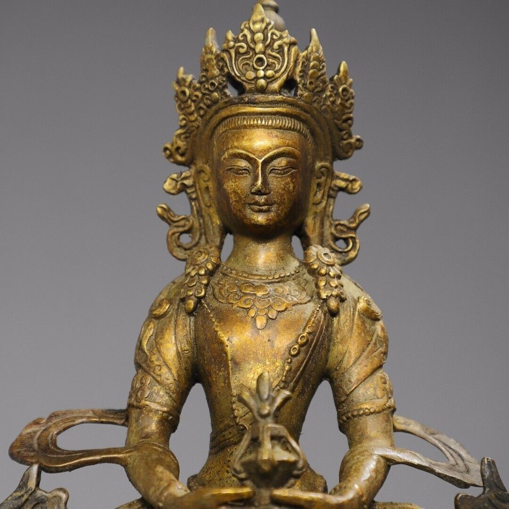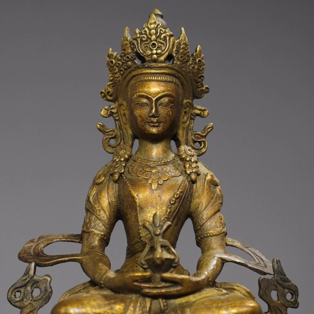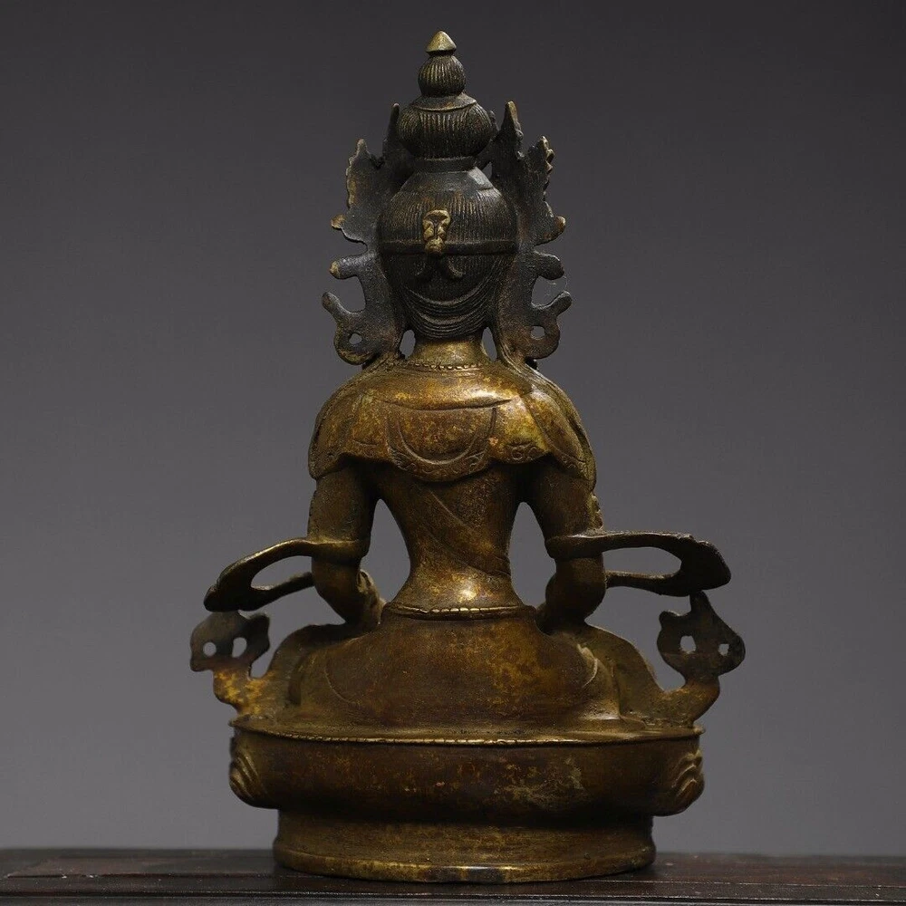 8.3 Antique Tibetan Gilt Bronze Amitabha Longevity Buddha Statue