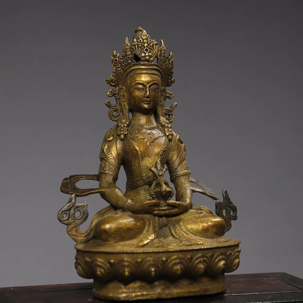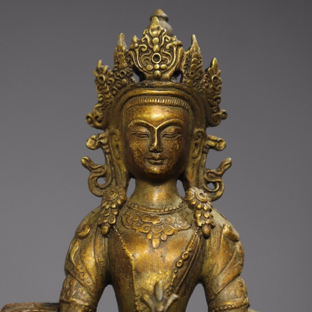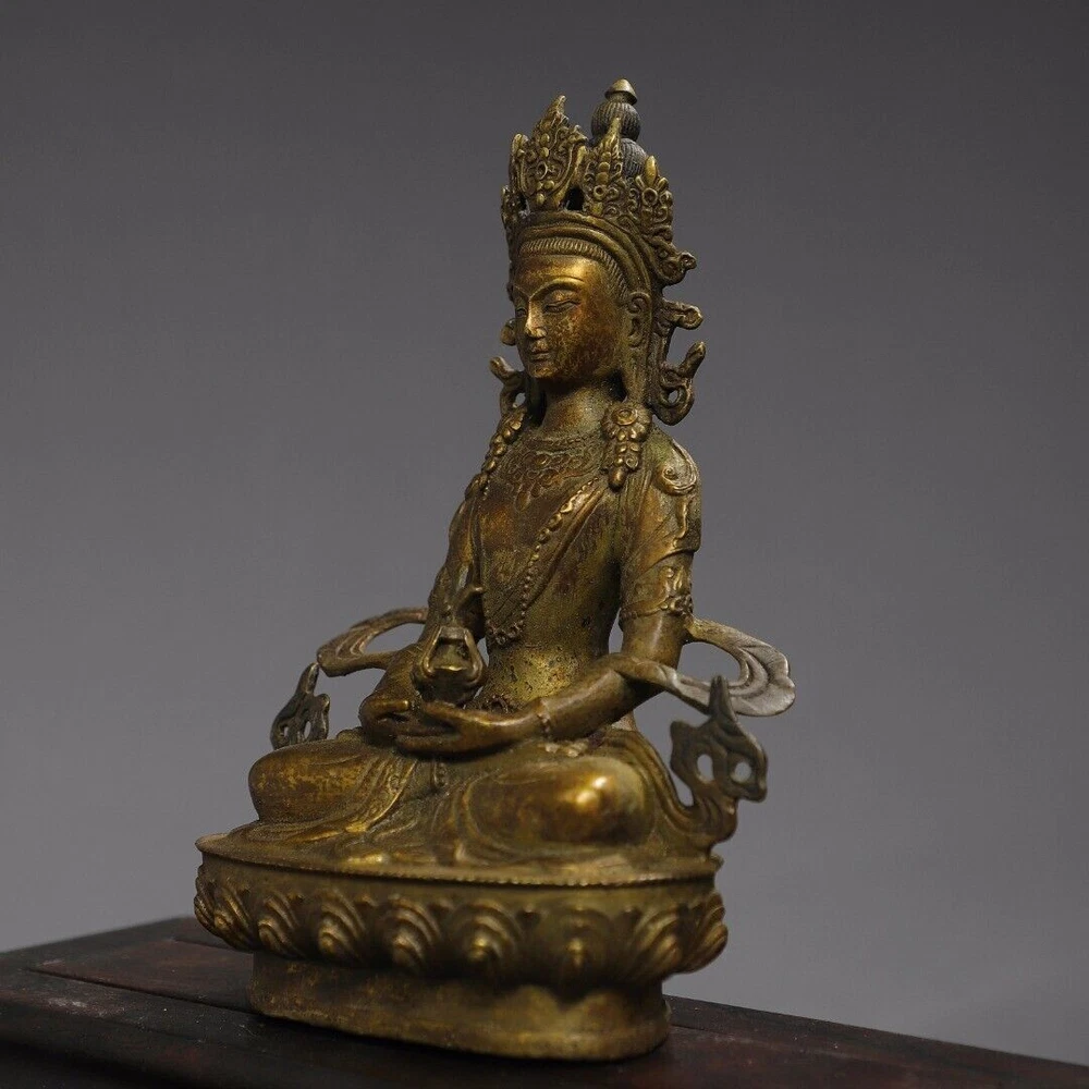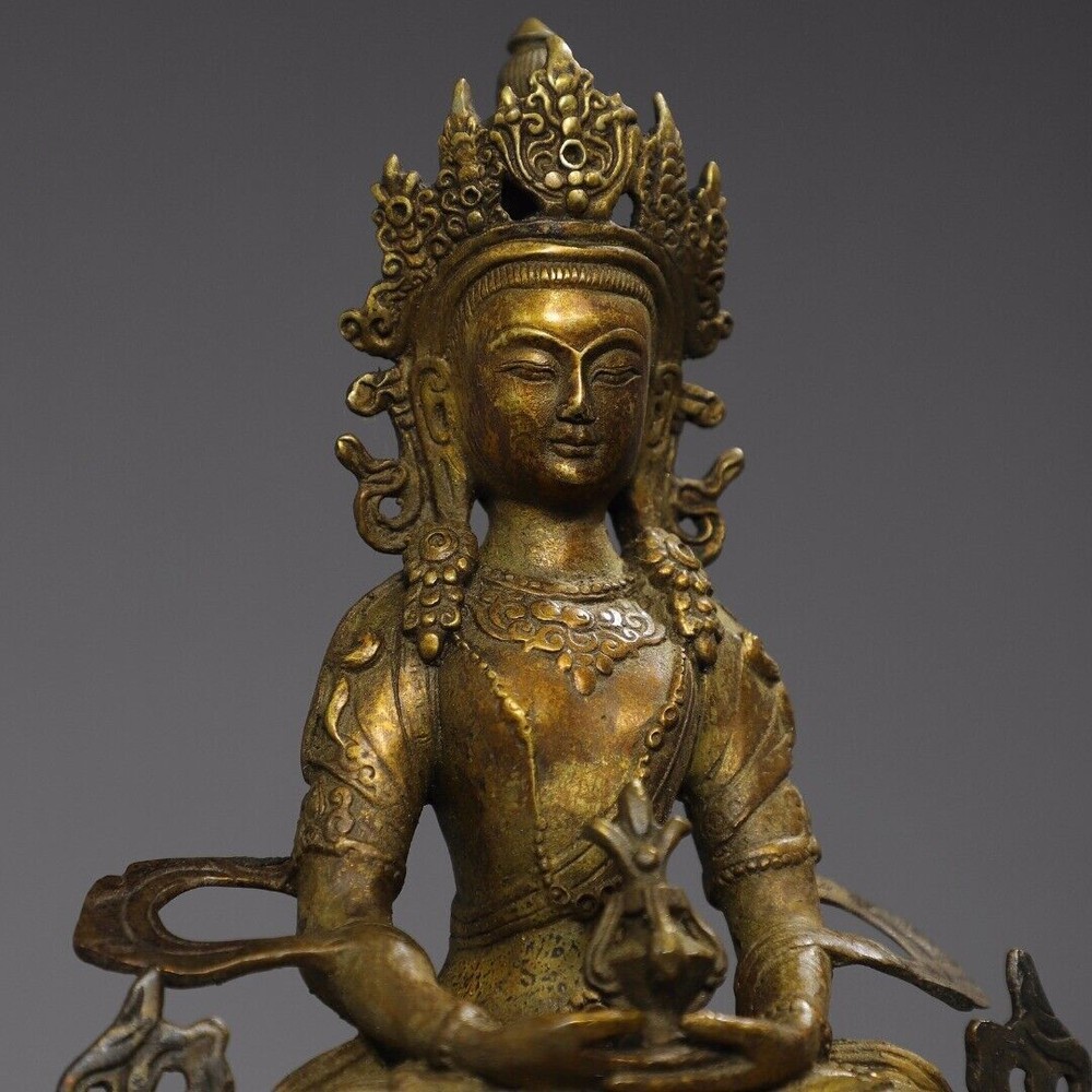 8.3 Antique Tibetan Gilt Bronze Amitabha Longevity Buddha Statue