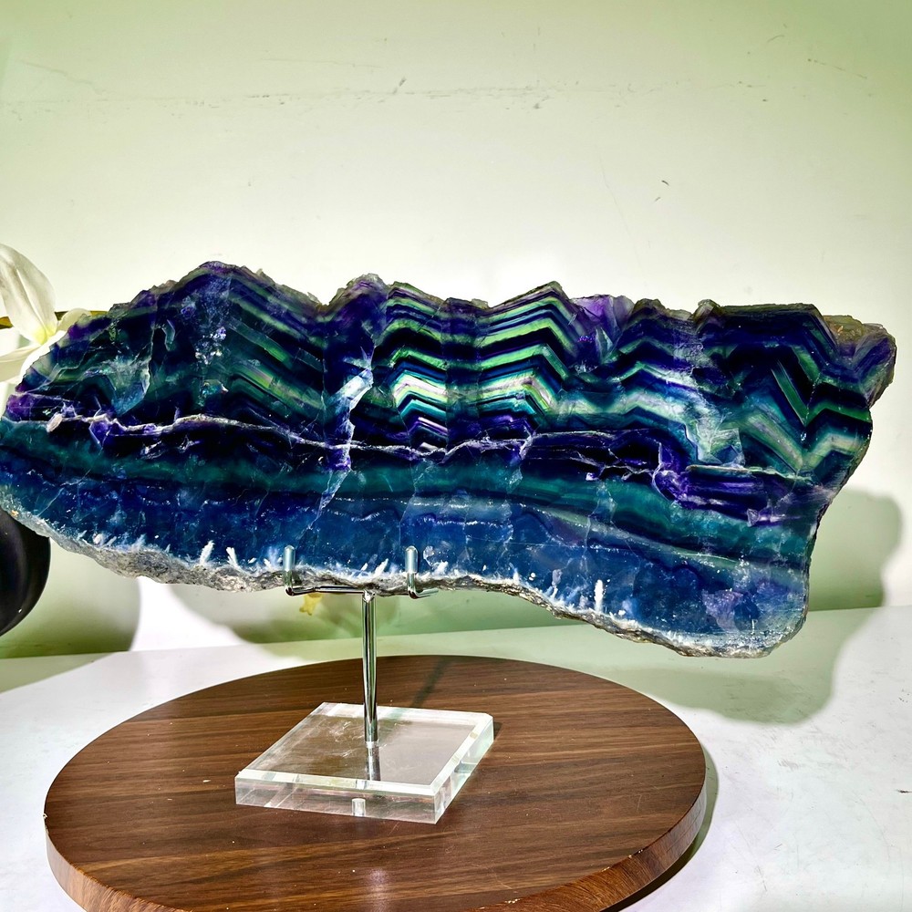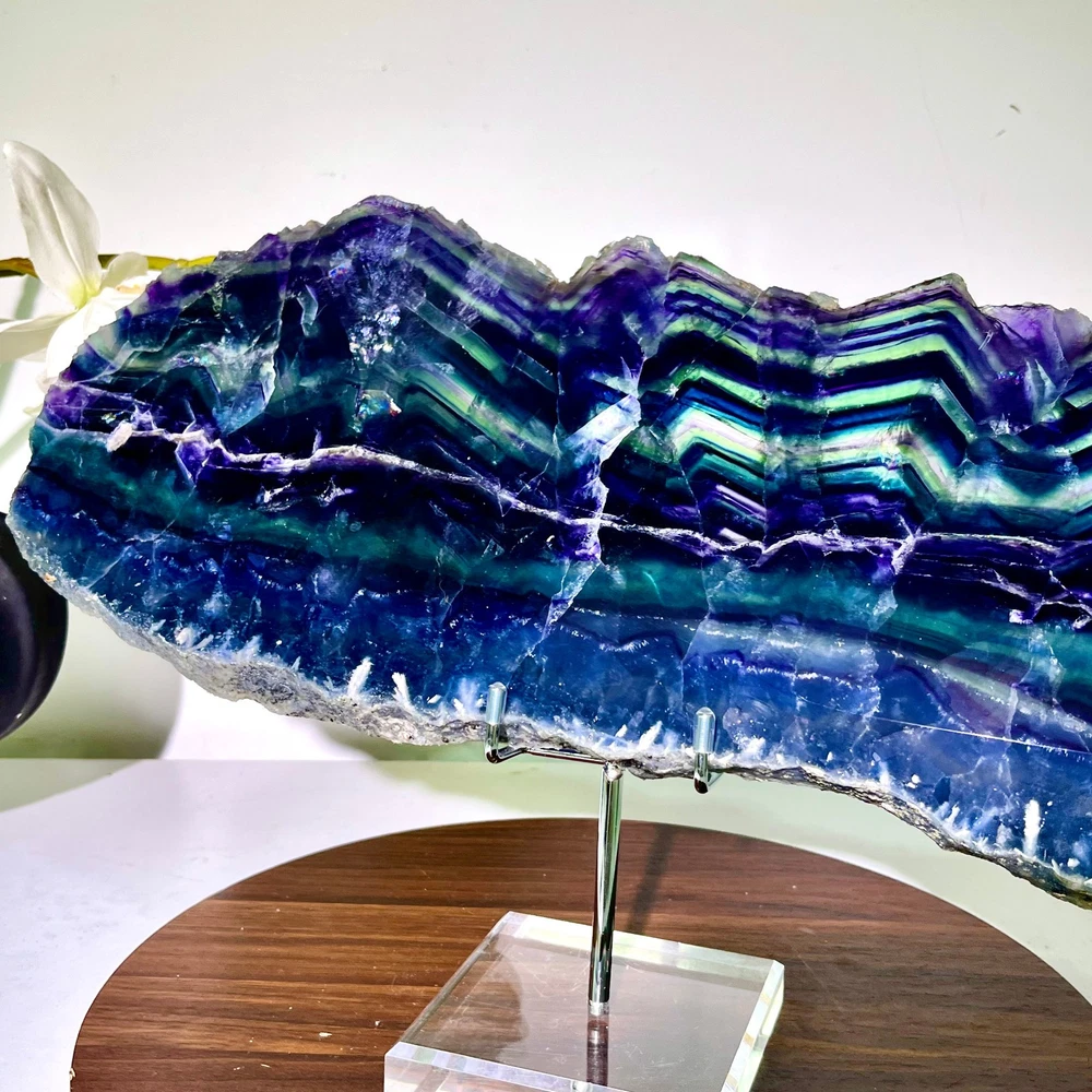 6.73LB Natural and beautiful colored fluorite slice quartz crystal mineral sampl