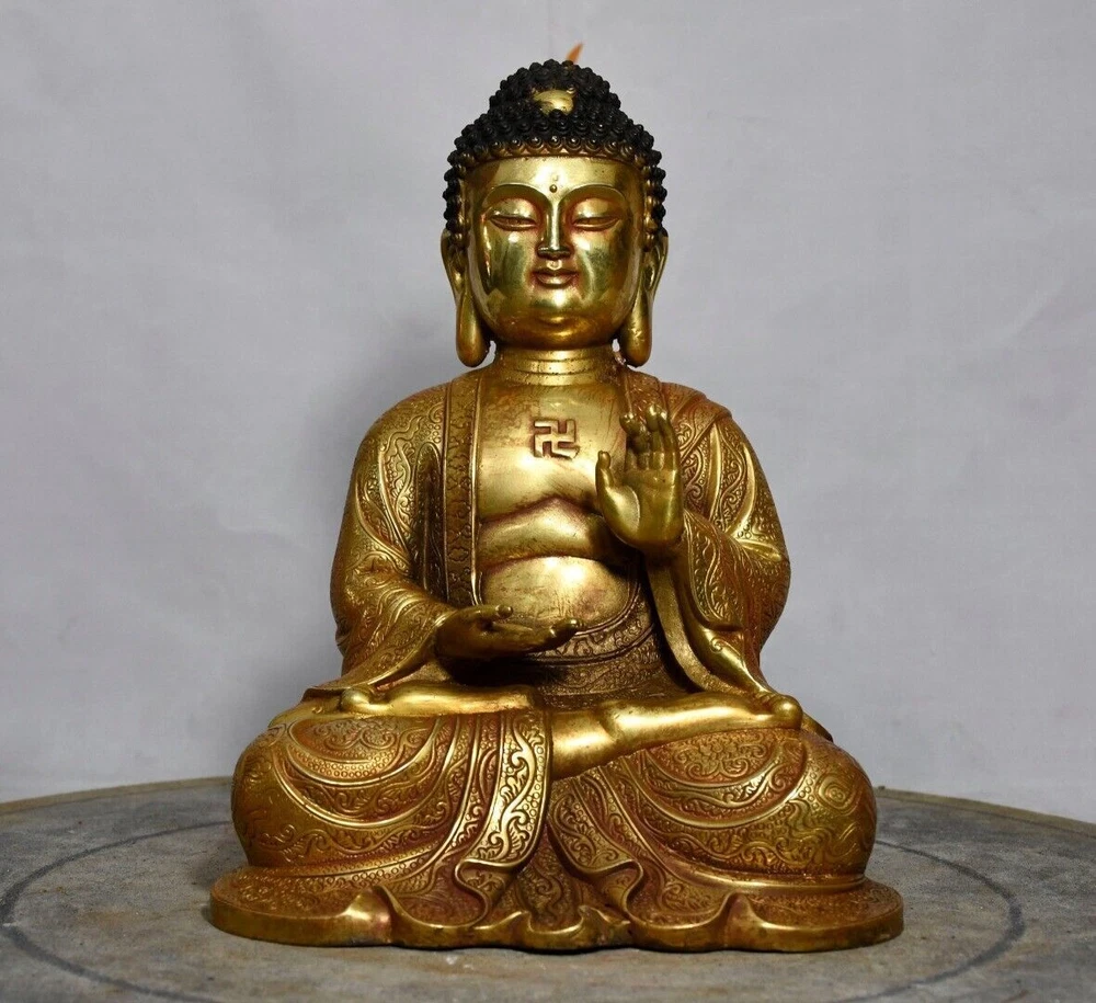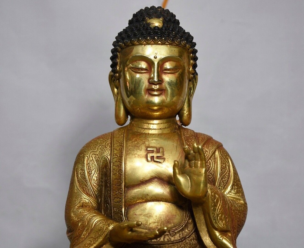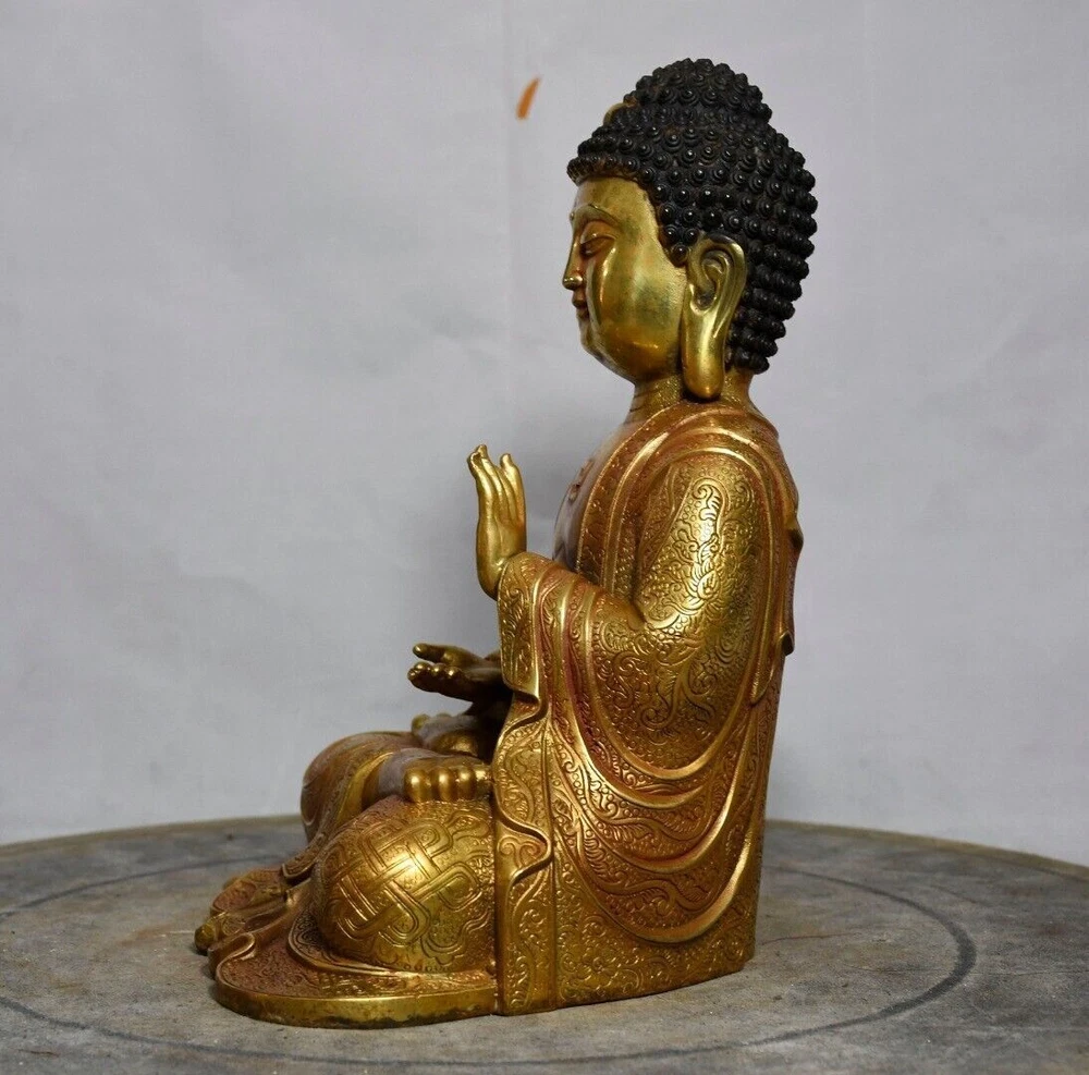 Size: Height: 21cm Wide: 17cm weight: 1.85kg Material: bronze gilt NOTE: Withno wood stand!!!! Condition: Good condition Origin: China