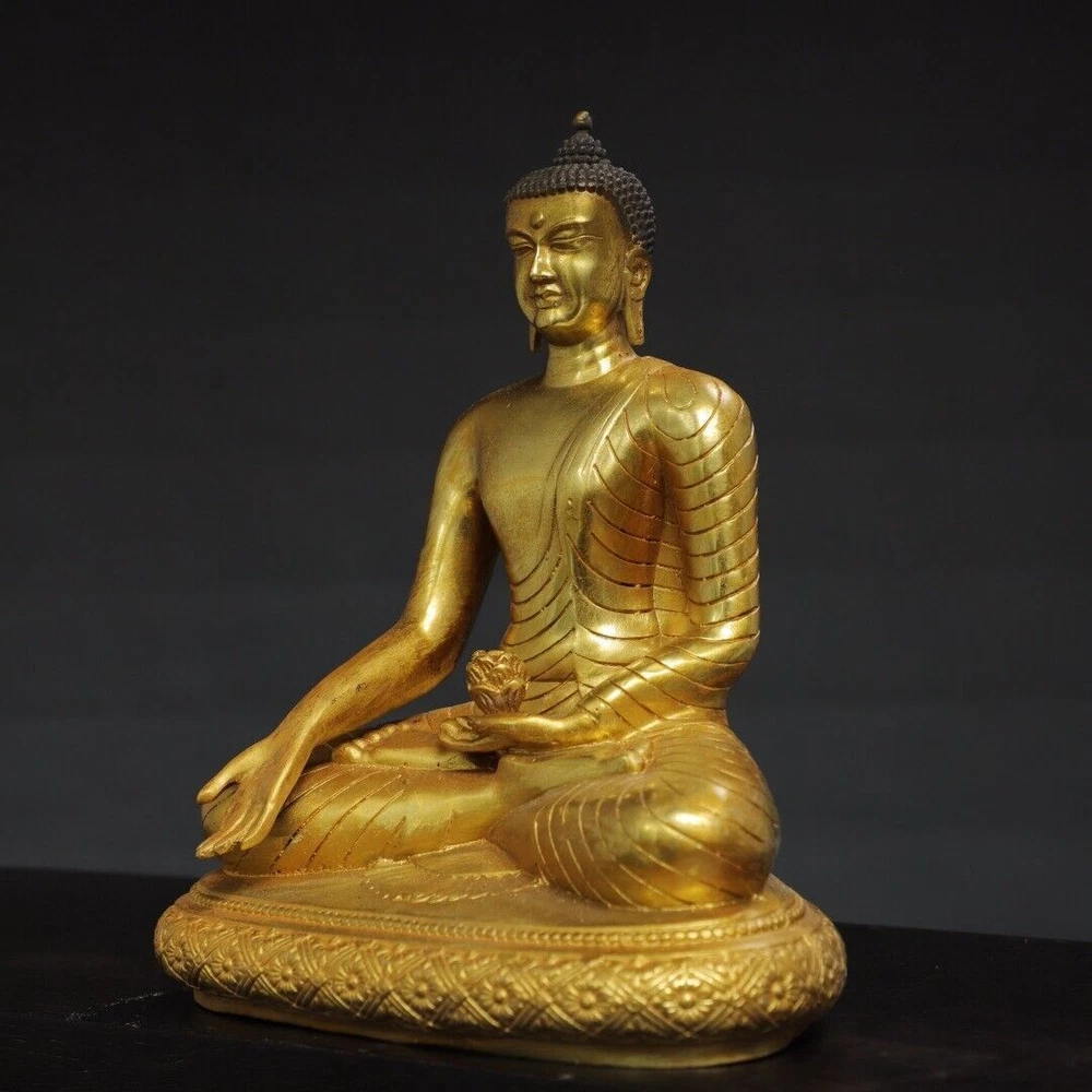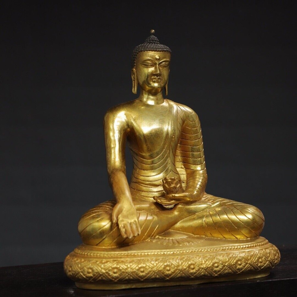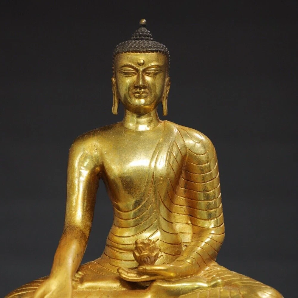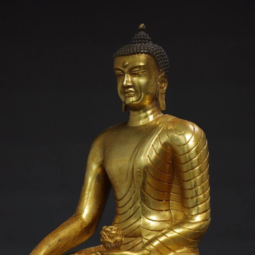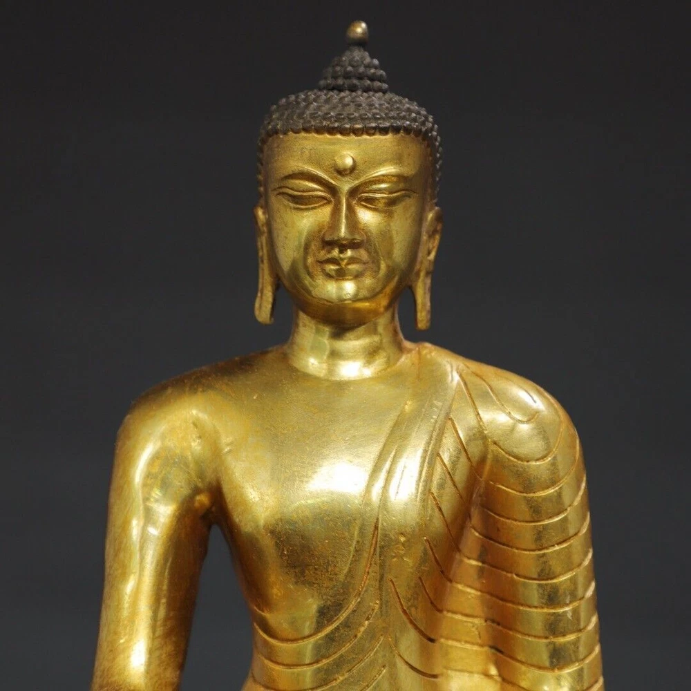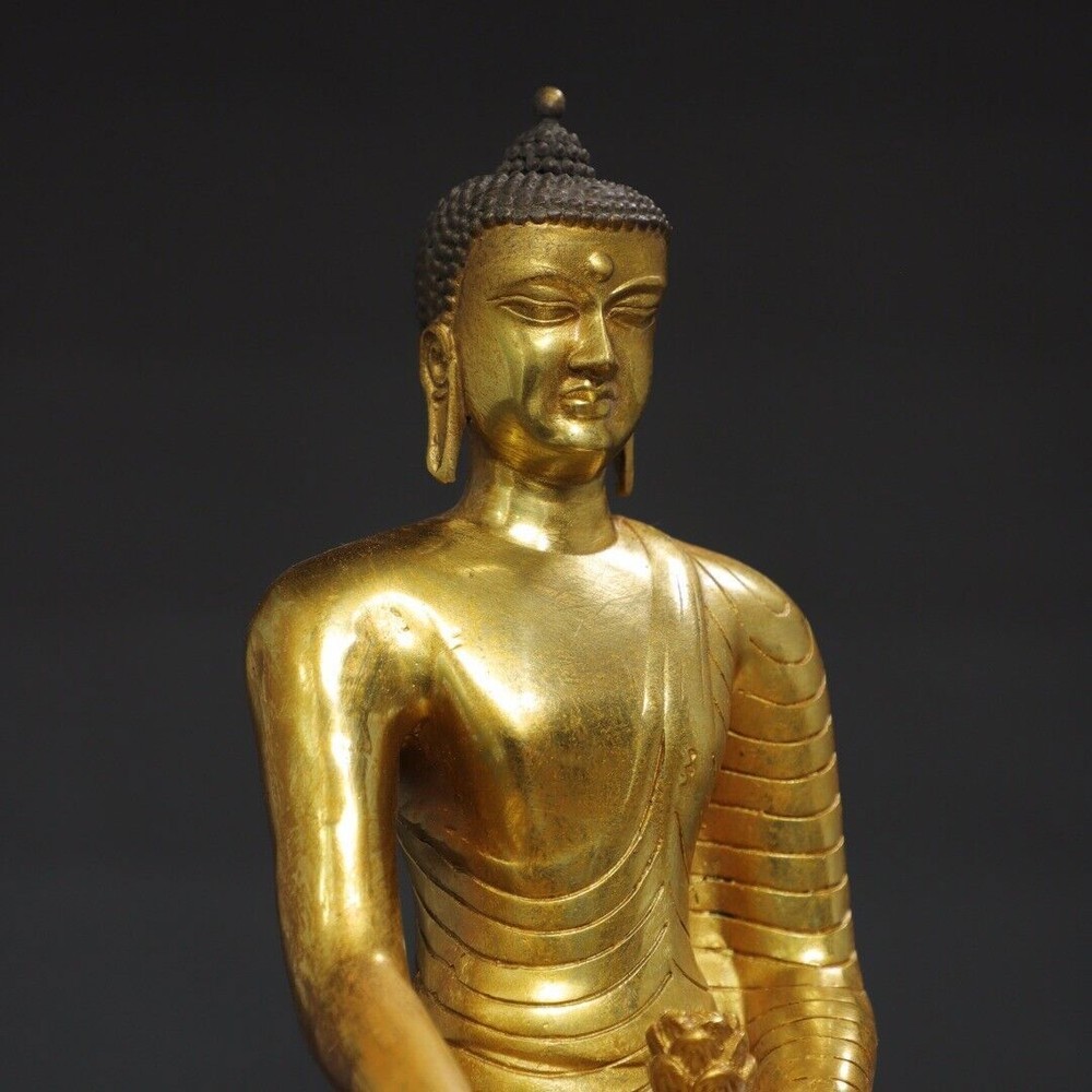 $ 133.068.7" Antique Tibetan Bronze Gilt Shakyamuni Buddha Statue from China