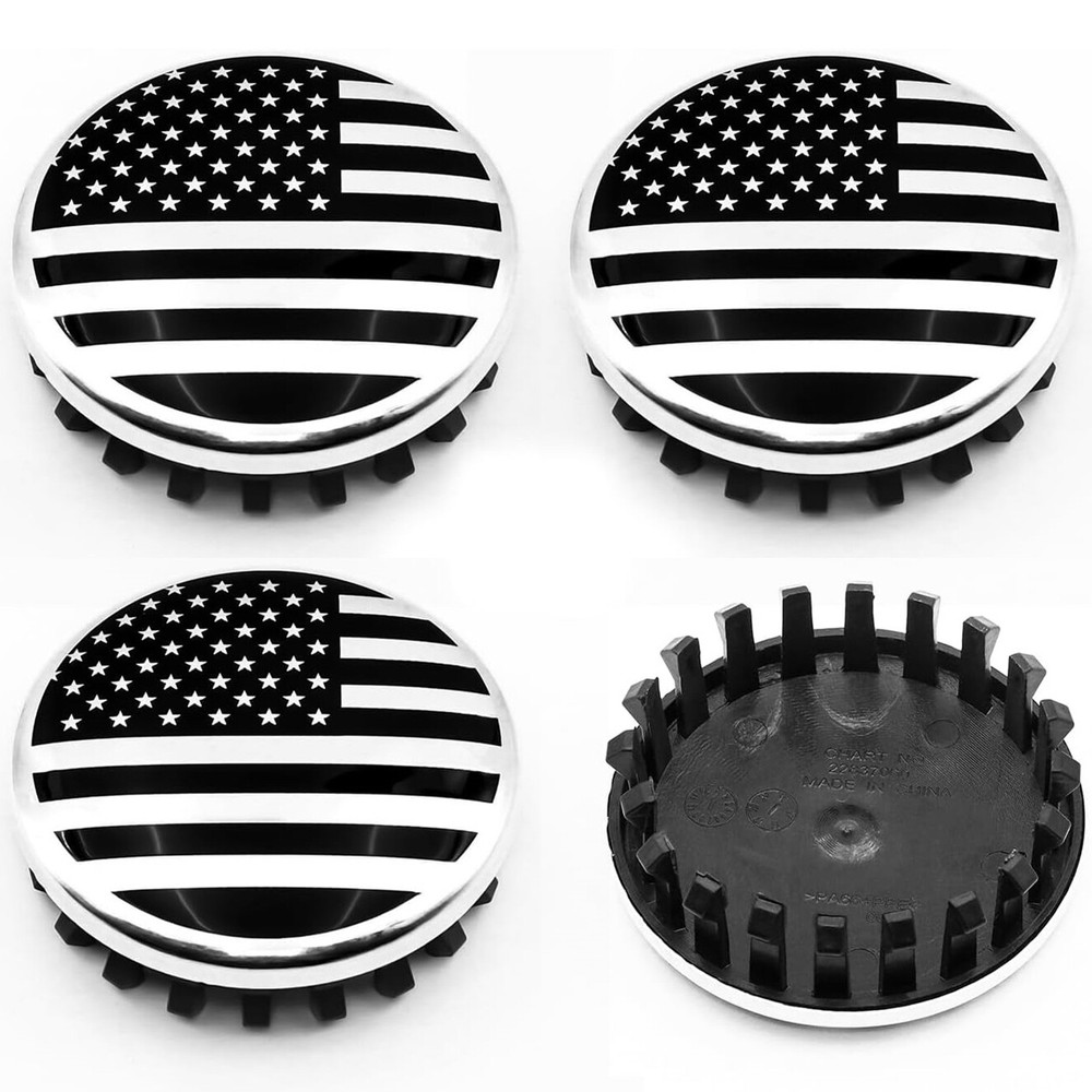 83mm US Flag Wheel & Valve Caps for Chevy Silverado 3.25" Center Caps