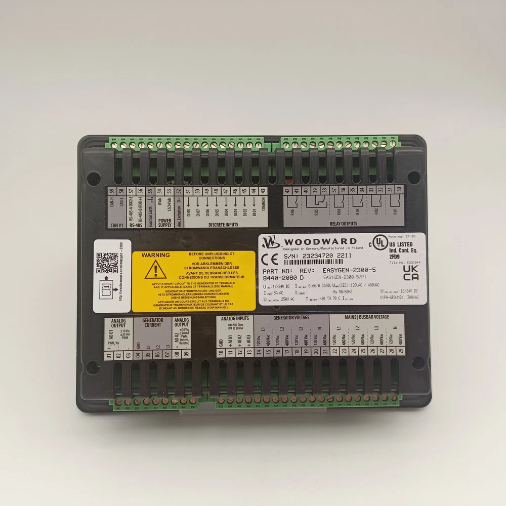 8440- 208 0 Woodward Easygen 2300-5 Original Generator Controller Auto Parts The easYgen-2000 Series is a compact, affordable genset control and protection package for load sharing up to 16 gensets in island operation, or parallel operation of a single unit with a utility. Its integrated load dependent start/stop programming allows you to define how gensets are brought on- and off-line to support changing load demands. It equally works with a mix of different sized engines, so you can maintain the spinning reserve you need while optimizing fuel efficiency. 8440-2080 Technical Specifications Approval Listing GOST-R Discrete Input Range 8-40 Vdc Manufacturer Woodward Max Value Current 0 to 32,000 A Proprietary Interface Connect only with Woodward DPC cable RMS value vibration 1.04 Grms Series 2000 About the 8440-2080 The 8440-2080 control unit is manufactured by Woodward Inc. The unit is from the easYgen-2000 series. This specific control unit is a Genset control unit. When using this control you should take extreme caution with electrostatic discharge, to help with the electrostatic discharge you should wear an ESD band which will keep your body set to the ground potential to help with the discharge. The control has specific voltages that are used to have the control run at peak performance is the measuring voltage is reading at 120 V then the ground rated voltage phase it could read at 150 Vac. and the maximum voltage value should read somewhere between 86-150 Vac. Any of the ambient variables do not react or rely on the voltage of the control. The maximum elevation will read 2,000 m ASL, and the reverse voltage protection should be at full supply range.