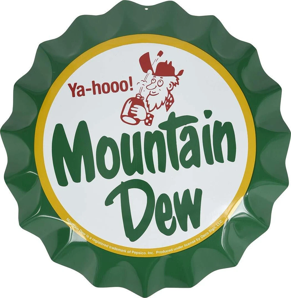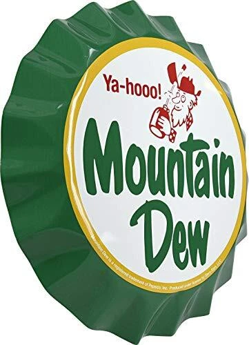 Express yourself with this fun Mountain Dew novelty bottle cap from . Made of a rust-resistant aluminum and is fade resistant against the elements. Can be hung up or displayed at your home or office. Can be hung up or displayed Made of rust-resistant aluminum Fun conversation starter Eye-catching design Great for beer enthusiasts
