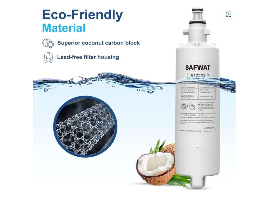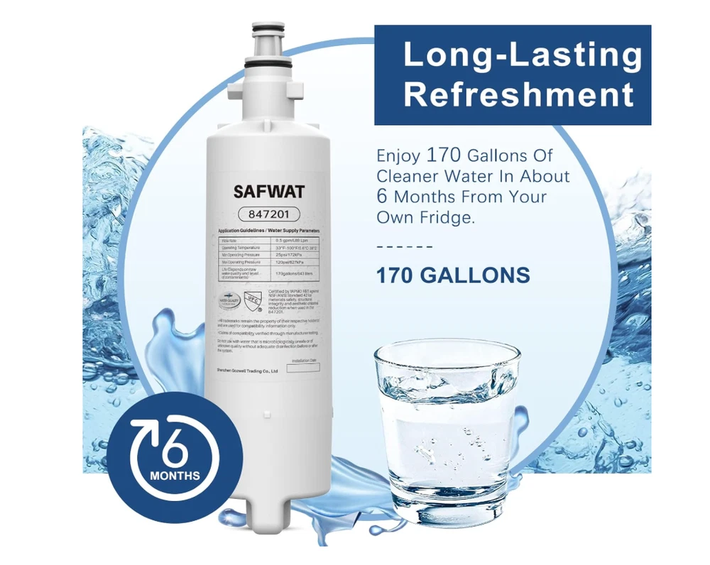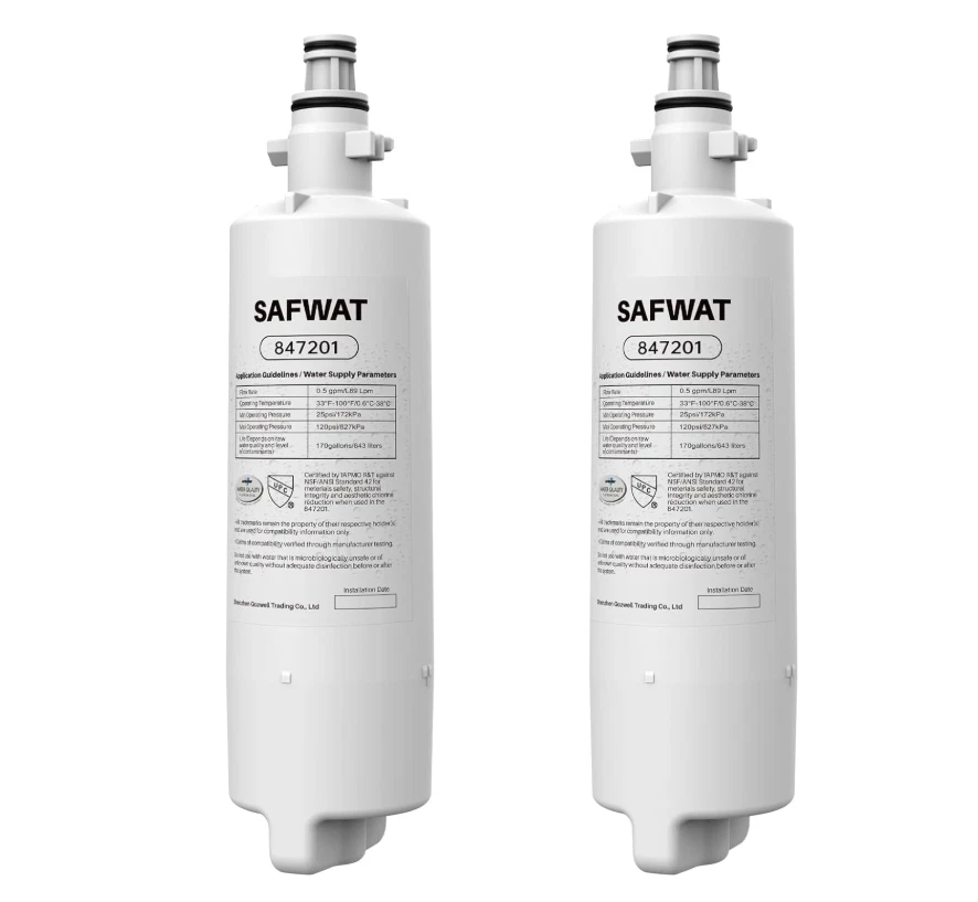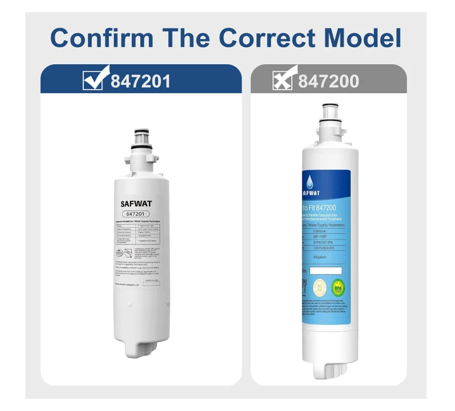 SAFWAT 847201 Filter compatible with Fisher & Paykel refrigerator models: RF523GDUX1, RF523MLDUX1, RF523MRDUX1. Filter Life: Every 6 months or when the "Change Filter" light comes on. Please confirm your filter or fridge part number.