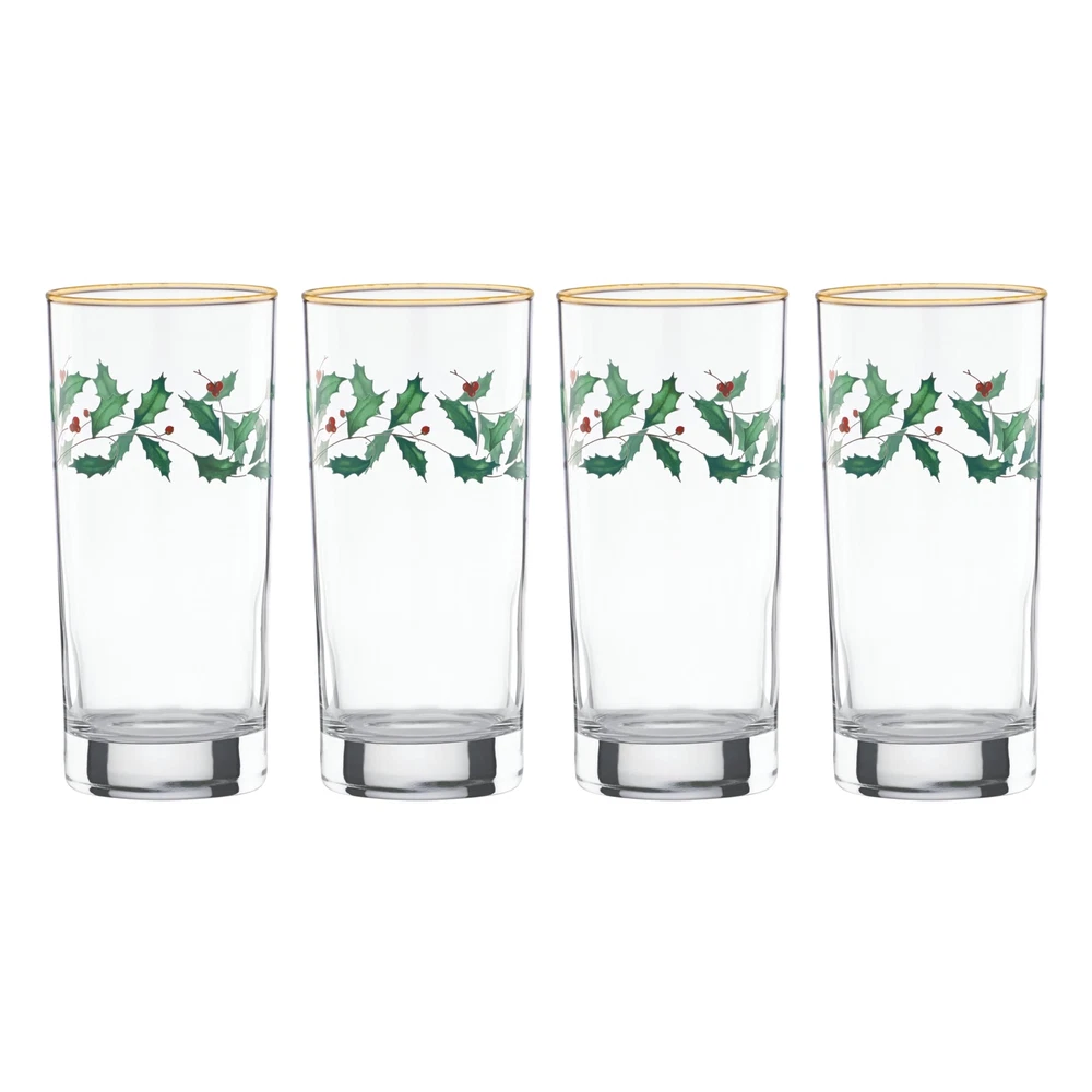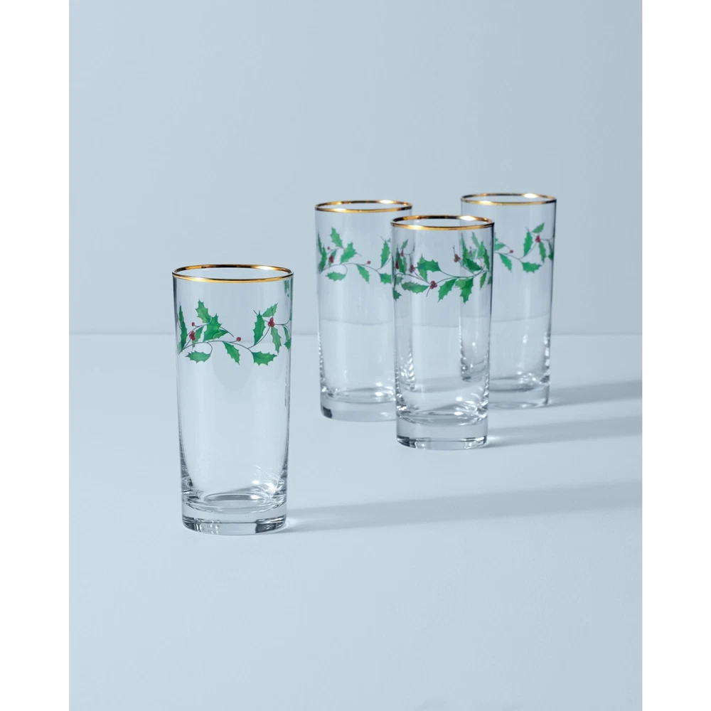 849605 Holiday 4-Piece Highball Glass Set, Christmas Dinnerware, Hosting