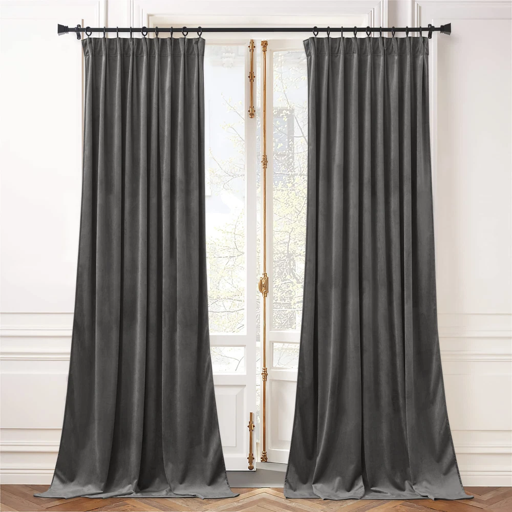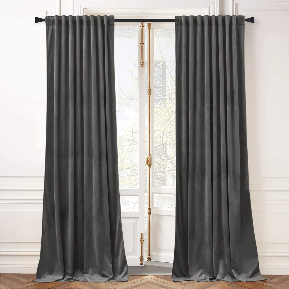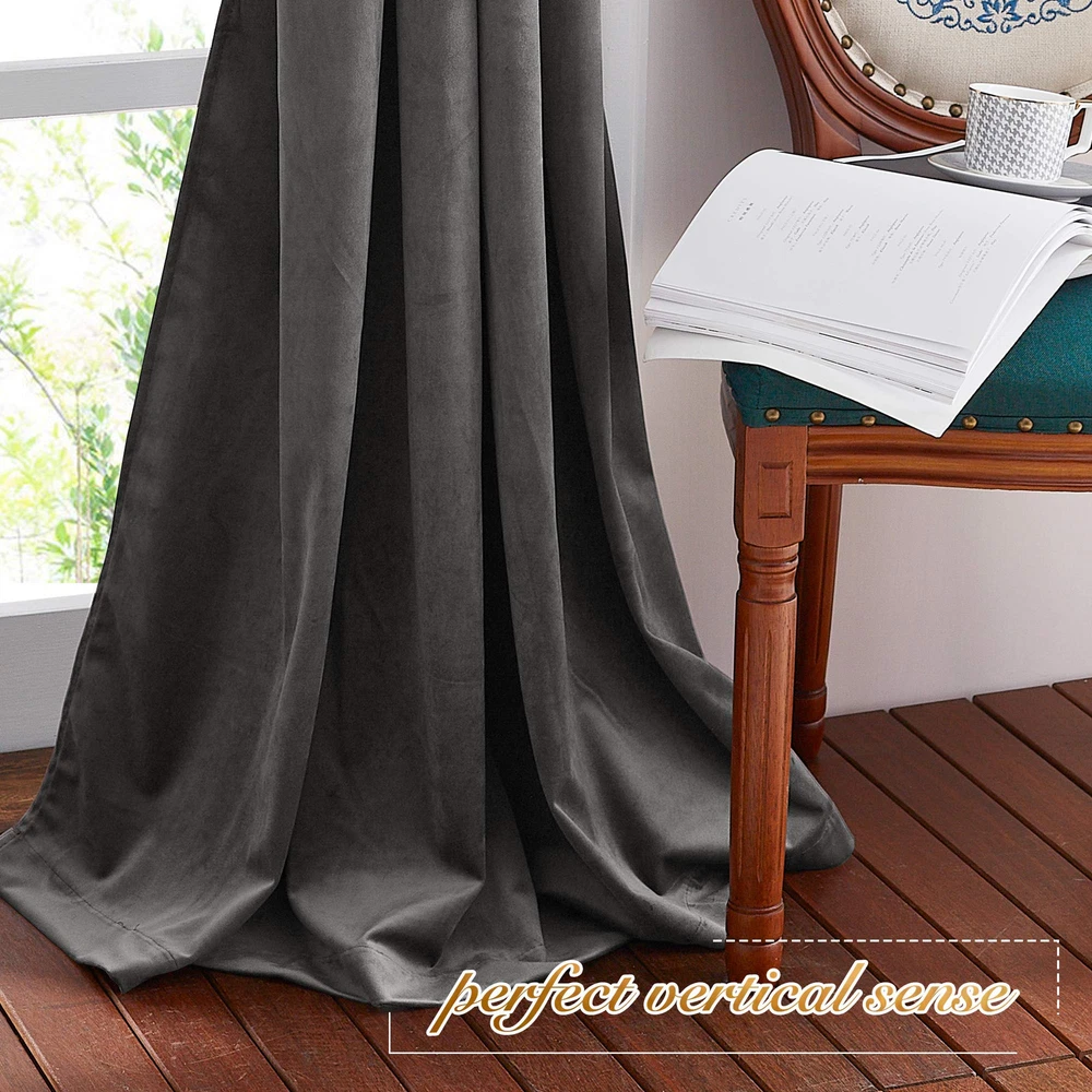 84-inch Grey Velvet Curtains with Back Tab for Sound Reduction and Light Blocking