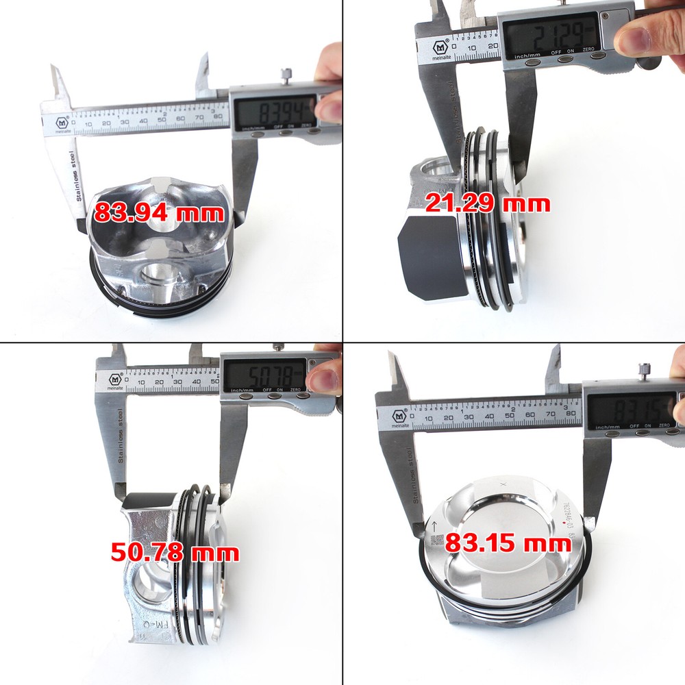 Product Description 4x Pistons Rings 84mm Φ22mm CR 10:1 Nural Goetze For BMW 125i 320i 328i 428i 528i X1 X3 Z4 F30 F10 F25 E89 2.0T 2.0 Turbocharge N20B20A N20B20B N20B20D N26B20A Fit N20B20A / N26B20A 2.0 Turbocharged (1997cc) Engine Compression ratio 10:1 Please send VIN number to us or confirm your original part number before order OE# 11 25 7 640 166 11 25 7 594 453 Replacement OE# 11 25 8 606 459 11 25 8 617 082 11 25 7 618 811 87-434600-00 WG1175839 Description - STD 0.00 spec (no fit cylinder expand) - Cylinder bore Φ 84.00mm - Engine Compression ratio 10:1 - Pin Diameter Φ 22mm - Ring Thickness 1.2mm / 1.5mm / 2.0mm - Please Read carefully the "Fit Car Model" in the following Package includes Piston x1set Piston Ring x1set Fit Car Model Brand & Model Produce Year Fit Engine BMW 2.0L L4 Turbo / Compression ratio 10:1 125i (EUR) 2010-2016 F20 F21 220i (EUR) 2012-2016 F22 F23 228i / 228ix 2012-2016 F22 F23 320i / 320ix (EUR) 2012-2016 F30 F31 320i (U.S) 2014-2017 F30 328i / 328ix 2011-2016 F30 F31 320i / 320ix GT (EUR) 2012-2016 F34 328i / 328ix GT 2012-2016 F34 420i / 420ix (EUR) 2013-2017 F32 428i / 428ix 2013-2017 F32 F33 F36 528i GT (EUR) 2012-2017 F07 520i (EUR) 2010-2017 F10 F11 528i / 528ix 2011-2017 F10 F11 X1 20i / 20ix (EUR) 2009-2015 E84 X1 28i / 28ix 2009-2015 E84 X3 20i / 20ix (EUR) 2011-2017 F25 X3 28i / 28ix 2011-2017 F25 X4 20ix (EUR) 2013-2017 F26 X4 28ix 2013-2017 F26 X5 28ix (EUR) 2013-2017 F15 X5 40ex 2013-2017 F15 X6 28ix (EUR) 2014-2018 F16 Z4 18i / 20i (EUR) 2011-2016 E89 Z4 28i 2011-2016 E89 Payment Shipping Returns Contact Us Feedback We only accept payment from, and ship to, the Confirmed ebay addresses. We only accept payment through Paypal for all orders, which should be made through eBay. Paypal offers various payment methods, including credit card, direct debit, VISA, and others. For more information, please visit Paypal. Import duties, taxes and customs clearance fees are not included in the item price or shipping charges. These charges are the buyer’s responsibility. If you have any additional payment issues, please contact customer service promptly. They will do their best to help you solve the problem! For inventory items in the United States: We will ship them via DHL,UPS, FEDEX or USPS within 1-2 working days after receiving payment and arrive 3-5 days after delivery. We committed to provide good quality products to all our customers. We accept return or exchange within 30 days after purchase! Your reason for return can be Product quality issues, where the product becomes unusable due to quality defects; The product is not compatible, where the correct model of product was purchased but the product was actually received but not compatible; Disliking the product or finding a lower priced product, etc. Your refund will be issue to your Paypal within 6 business days , Paypal unique refund transaction ID number will be provided. Please keep in mind, you might need extra 2-7 business days for the refund to deposit in your account , it depends on your credit card company. If the item is installed or defective after 30 days, please check our warranty page. If the product is defective or damaged upon arrival, or if it is shipped incorrectly, please contact us immediately. We will definitely provide the most satisfactory service! If you have any problems or concerns whatever with your order or products, please mail us and give us a chance to assist you before leaving any feedback. We will reply every message and solve the problem within 24 hours(except holiday). We maintain high standards of excellence Postive feedback and strive for 100% customer satisfaction! Feedback is very important to us. We greatly appreciate your POSITIVE feedback. Please do NOT leave negative or neutral feedback without asking for help. If you are not satisfied, please contact us immediately and we will try our best to give you a perfect answer at the first time. Please feel free to contact us via the ebay messages system, if you have any question, we will assist you ASAP!!! Payment We only accept payment from, and ship to, the Confirmed ebay addresses. We only accept payment through Paypal for all orders, which should be made through eBay. Paypal offers various payment methods, including credit card, direct debit, VISA, and others. For more information, please visit Paypal. Import duties, taxes and customs clearance fees are not included in the item price or shipping charges. These charges are the buyer’s responsibility. If you have any additional payment issues, please contact customer service promptly. They will do their best to help you solve the problem! Shipping For inventory items in the United States: We will ship them via DHL,UPS, FEDEX or USPS within 1-2 working days after receiving payment and arrive 3-5 days after delivery. Returns We committed to provide good quality products to all our customers. We accept return or exchange within 30 days after purchase! Your reason for return can be Product quality issues, where the product becomes unusable due to quality defects; The product is not compatible, where the correct model of product was purchased but the product was actually received but not compatible; Disliking the product or finding a lower priced product, etc. Your refund will be issue to your Paypal within 6 business days , Paypal unique refund transaction ID number will be provided. Please keep in mind, you might need extra 2-7 business days for the refund to deposit in your account , it depends on your credit card company. If the item is installed or defective after 30 days, please check our warranty page. If the product is defective or damaged upon arrival, or if it is shipped incorrectly, please contact us immediately. We will definitely provide the most satisfactory service! Contact Us If you have any problems or concerns whatever with your order or products, please mail us and give us a chance to assist you before leaving any feedback. We will reply e