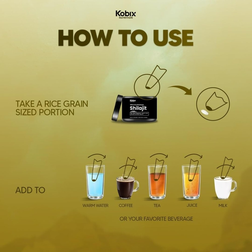 Kobix Pure Himalayan Shilajit Resin, High Nutritional Potency, 85+ Trace Minerals Humic & Fulvic Acid, Immune Support for Men and Women, 3rd Party US Lab Tested- 30g Flavor Unflavored Primary Supplement Type minerals Unit Count 1.0582 Ounce Item Form Resin Product Benefits Immune Support, Energy Management Age Range (Description) Adult Number of Items 1 Material Feature Natural About this item Traditionally Used for Daily Wellness Kobix Pure Himalayan Shilajit has long been valued in traditional practices for supporting energy, vitality, and overall well-being. Regular use may help you feel more balanced and refreshed over time. Third-Party Lab Tested for Purity Our shilajit is tested by independent U.S. labs to ensure safety, authenticity, and quality. Every batch is carefully developed with a focus on purity and transparency. Rich in Trace Minerals & Fulvic Acid Kobix Shilajit contains 85+ naturally occurring trace minerals and fulvic acid — known for its role in supporting natural cellular functions and overall nutritional balance. Supports Natural Energy & Endurance Shilajit is traditionally used to help maintain stamina and support physical performance. It's a convenient addition to your routine to feel more fueled throughout the day. Rooted in Ancient Practices Used for centuries, shilajit is often incorporated into daily rituals to support strength, resilience, and natural vitality — making it a timeless wellness companion for modern lifestyles. Product details Package Dimensions : 3.7 x 2.17 x 1.73 inches; 3.84 ounces Date First Available : February 28, 2024 Manufacturer : Kobix Nutrition Country of Origin : USA Important information Ingredients Pure Shilajit Legal Disclaimer Statements regarding dietary supplements have not been evaluated by the FDA and are not intended to diagnose, treat, cure, or prevent any disease or health condition. Product Description