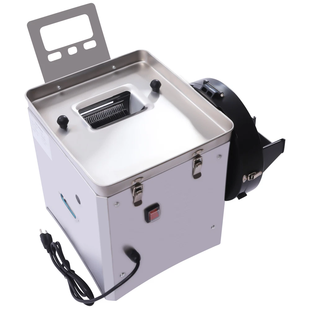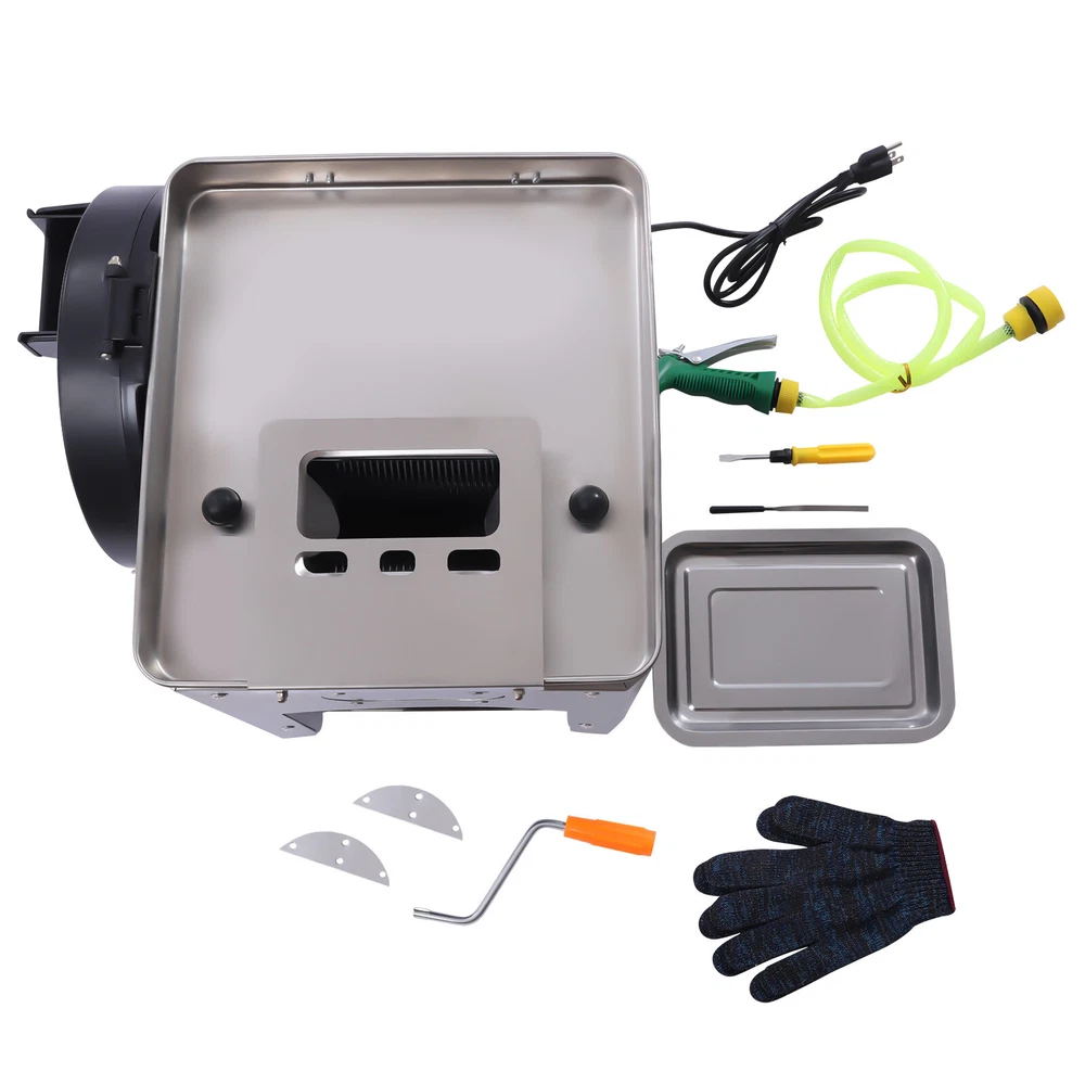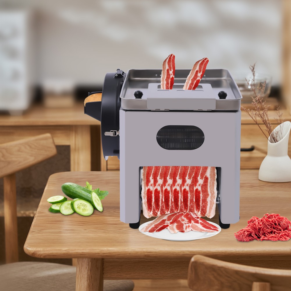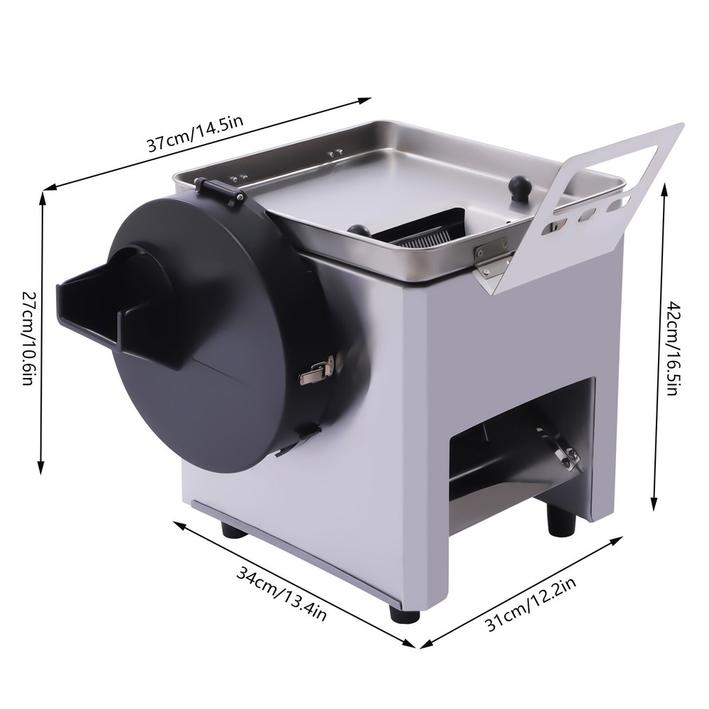 Commercial Meat Cutter Machine Electric Vegetable Slicer meat-cutting 850w Application It can cut fresh meat, cucumbers, potatoes, roots and other hard materials; it is suitable for cutting any boneless meat, such as chicken, mutton, and beef in business settings. Specification Material: Stainless Steel Model: XJT-x Color: Silver Operation Mode: Automatic/Manual Plug Type: US Power: 850w Voltage: 110v, 60Hz Speed: 200kg/h(440lbs/h) Blade Size(Cut Meat): 3.5mm/ 1/7in Blade Size(Cutting Vegetables/Fruit): 2.5mm/ 1/10in Package Size: 40*37.5*42cm/15.75*14.76*16.54in Product Size: 37*34*42cm/14.5*13.4*16.5in Upper Inlet Size: 7*13cm/2.76*5.12in Side Inlet Protection Cover Size: 27*6cm/10.6*2.4in Gross Weight: 22kg/48.5lbs Net Weight: 20kg/44lbs Commercial Meat Cutter Machine Electric Vegetable Slicer Meat-cutting 850W 110V Commercial Meat Cutter Machine Electric Vegetable Slicer Food Strips Cubes Cutting Machine for Stir Fry Tacos Chicken Breast Restaurant Kitchen Description A great meat-cutting machine will help unleash your passion for cooking. This commercial meat cutter machine is powerful with its 850w copper core motor. It saves you a lot of time by cutting meat quickly. The classic design has a modern look that fits into any kitchen. Don't hesitate to take it home and be a chef! Key Features Selected Materials : The meat cutter and blades are made of high-quality stainless steel, so they are more durable, and rust and corrosion-resistant. Efficient Cutting : It adopts an 850w copper core motor, which can get to 440lbs/h meat cutting efficiency, saving you a lot of cooking time. Vertical Operation: It is designed vertically and the meat falls directly. The meat output is more efficient compared to machines with a slanted design. You don't need to pick the meat with your hands to protect your fingers from injury. Safe and Hygienic : The blade is designed with a built-in and wrapped cover, which ensures that the food is very clean and hygienic. In addition, it comes with an emergency stop function, when the lid is opened, the machine will immediately power off, which better protects the safety of users. Easy to Operate : Compared to laborious manual cutting, you can simply add meat to the machine, press the switch button and finish the daily use. Multi-functional : It has two feeding ports. The upper feeding port is used to cut raw meat/soft vegetables into slices, strips and cubes/meat filling, and a side inlet is for slicing hard vegetables. It can give more help to your kitchen! 2 Modes : It has two operation modes: automatic and manual. The package is equipped with handle parts for manual meat cutting. In case of unexpected power failure, you can cut meat manually. Smooth Cutting : It features a sharp rotating knife set that allows you to cut smoothly without jamming, further enhancing your cutting experience. Easy to Clean and Disassemble : It has a built-in stainless steel baffle to isolate the motor from water and can be cleaned directly with soapy water or a water gun. You only need to unscrew 4 screws to remove the blade set, easy to thoroughly clean and replace the blade set with different sizes. Complete Accessories : The package contains all the parts needed to use including gloves and a meat serving tray, so it's more convenient for you to use. Compact Design : It measures only 14.5*13.4*16.5in, which is perfect for everyday countertop use and takes up little space. Details Transparent Viewing Window : The body has a transparent viewing window design, which makes it easy for you to observe the meat cutting at any time. Safe Rounded Corners : The edges of the machine are designed with rounded corners, which can prevent scratching your hands. Switch Protective Cover : A transparent protective cover design is used at the switch, which is effectively waterproof and dustproof. Four Rubber Feet : The bottom of the machine is equipped with four rubber feet to ensure the stability of the meat cutter during work. Application It can cut fresh meat, cucumbers, potatoes, roots and other hard materials; it is suitable for cutting any boneless meat, such as chicken, mutton, and beef in business settings. Specification Material: Stainless Steel Model: XJT-x Color: Silver Operation Mode: Automatic/Manual Plug Type: US Power: 850w Voltage: 110v, 60Hz Speed: 200kg/h(440lbs/h) Blade Size(Cut Meat): 3.5mm/ 1/7in Blade Size(Cutting Vegetables/Fruit): 2.5mm/ 1/10in Package Size: 40*37.5*42cm/15.75*14.76*16.54in Product Size: 37*34*42cm/14.5*13.4*16.5in Upper Inlet Size: 7*13cm/2.76*5.12in Side Inlet Protection Cover Size: 27*6cm/10.6*2.4in Gross Weight: 22kg/48.5lbs Net Weight: 20kg/44lbs How to Remove the Blade Set 1. Unscrew the 2 screws of the upper cover by hand. 2. Lift the latch at the back. 3. Remove the upper cover. 4. Unscrew a total of 4 screws on both sides. 5. Take out the blade set. Package Included 1*Commercial Meat Cutter Machine 1*Water Gun Set 1*Sharpening Tool 1*Handle Part 2*Blade Gaskets 1 Pair*Gloves All Accessories for Assembly Notes Cleaning is required before using the machine for the first time. Put soft vegetables with leaves into the inlet and then rinse the blade set with water. Please make sure that the power supply is disconnected every time you clean. Before use, please check whether the blade comb is placed correctly and the power switch is lighted. After cleaning, it should be placed in a dry and ventilated place. You can add some cooking oil to the blade set for simple maintenance. Please note that this machine cannot be used to cut frozen meat, bone-in meat, large pieces of meat, aged meat, cooked meat and beef tendons. Please allow a slight color difference due to shooting light, and 1-3cm error due to manual measurement, please make sure you don't mind before ordering. Payment Delivery details Terms of sales About us Contact us Payment We accept ebay payment 。 Fees such as import duties, taxes are not included in the item price or shipping costs. These char